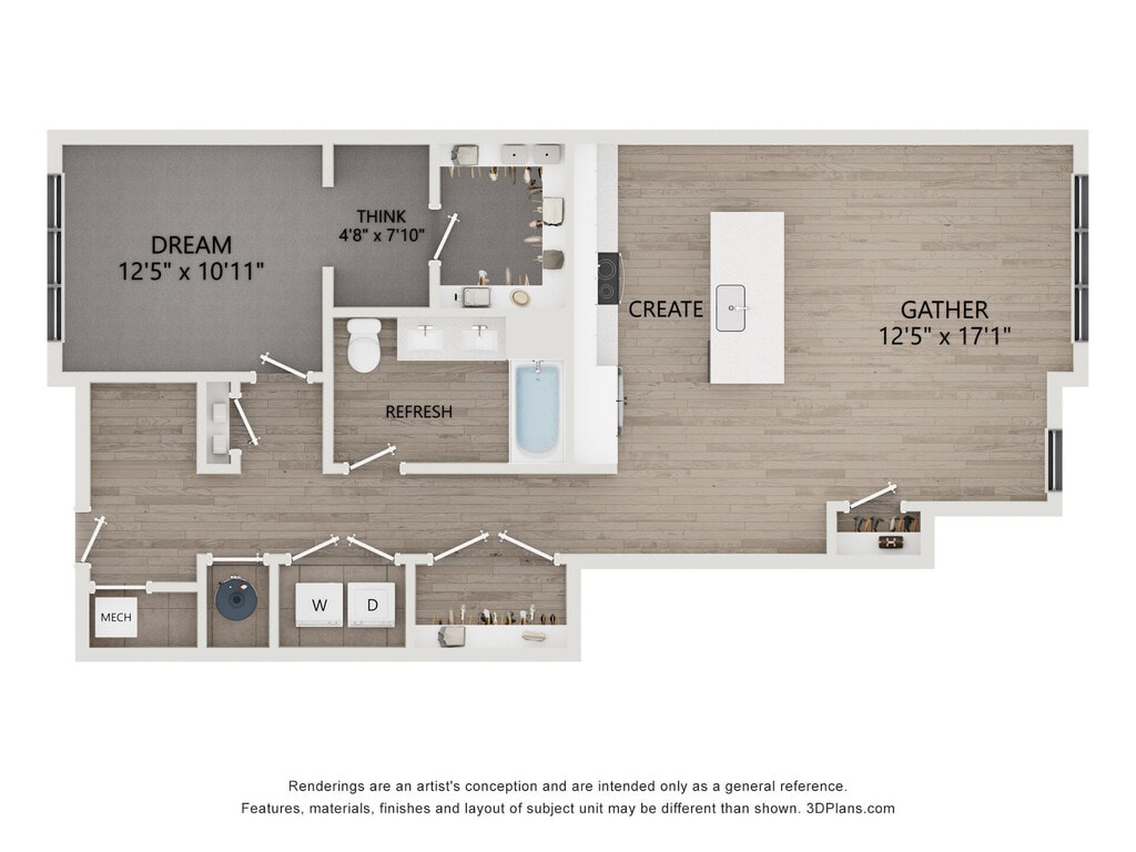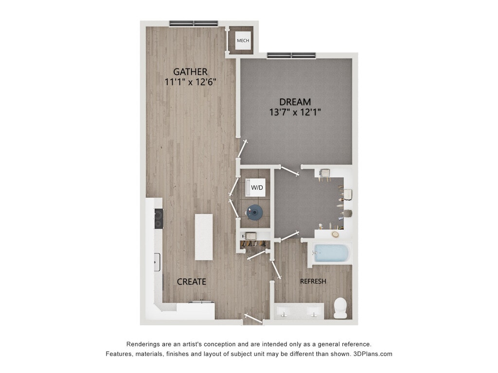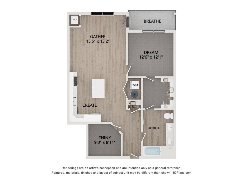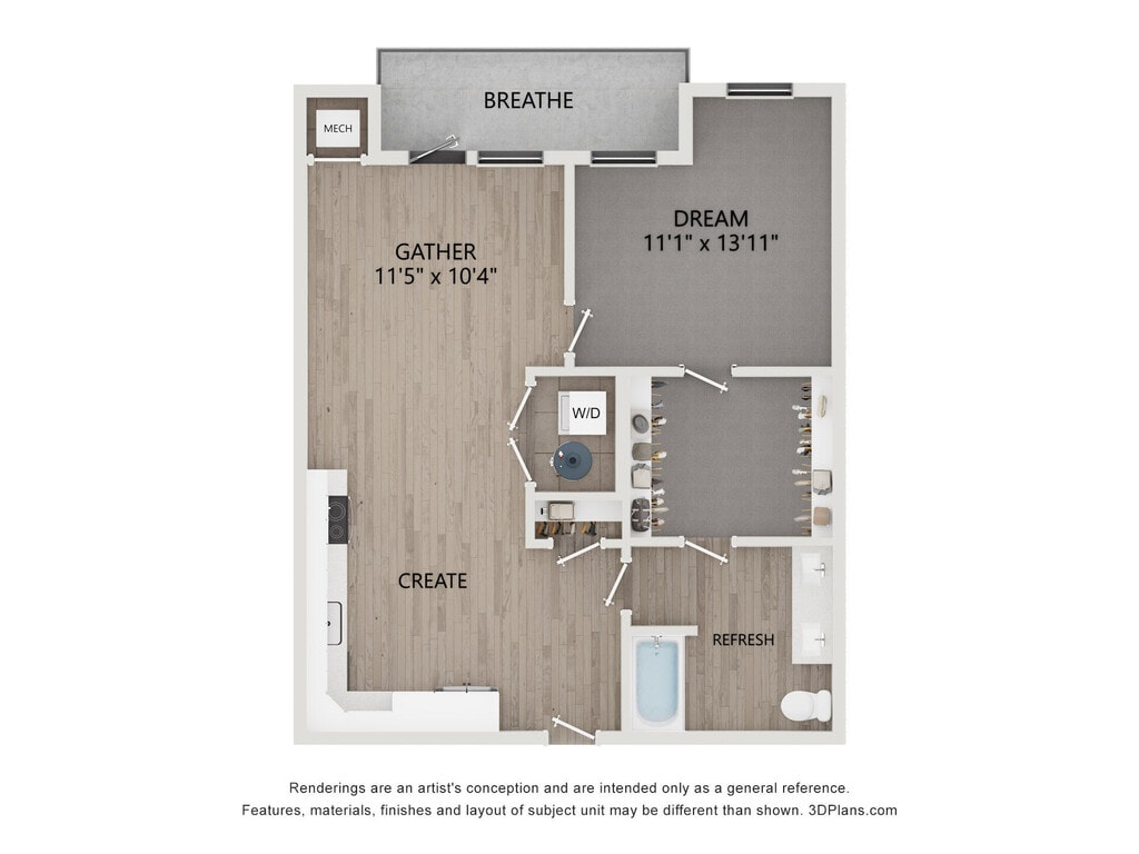 1 Bed, 1 Bath, 705 sq ftAvailable NowModel Gallery