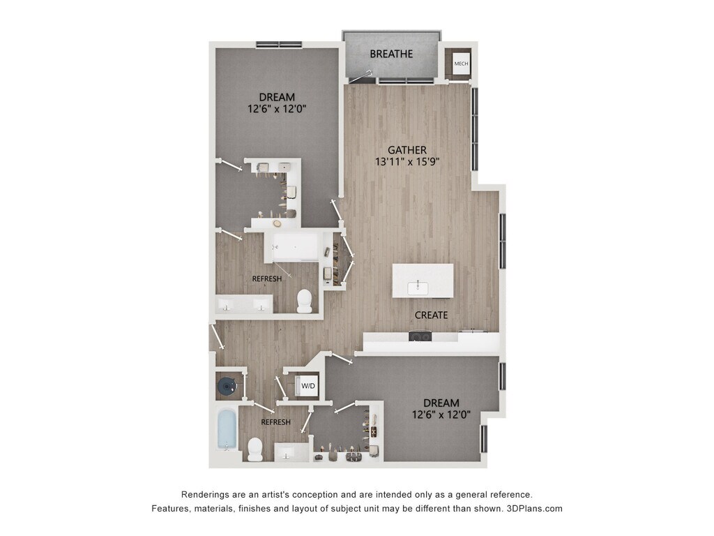 - Artfully crafted 1, 2 and 3 bedroom apartments