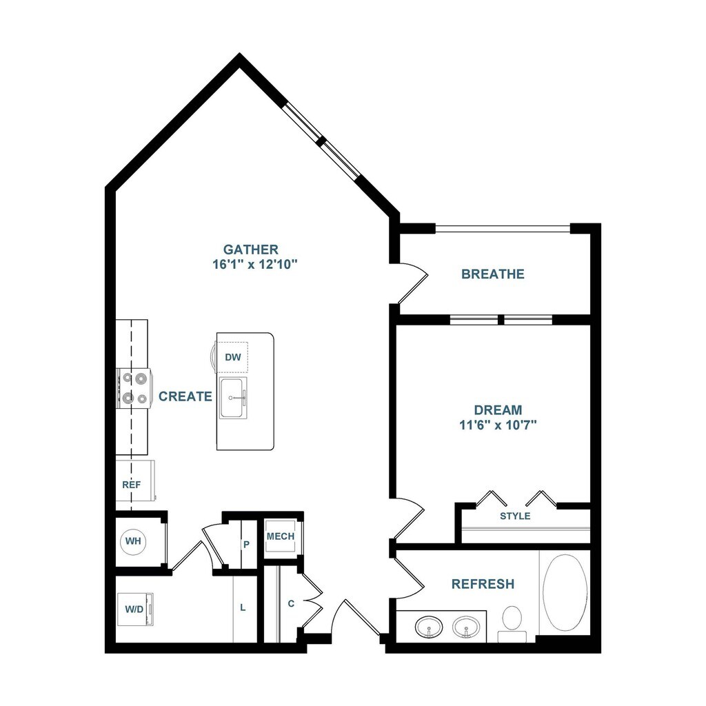 1 Bed, 1 Bath, 822 sq ftAvailable NowModel Gallery