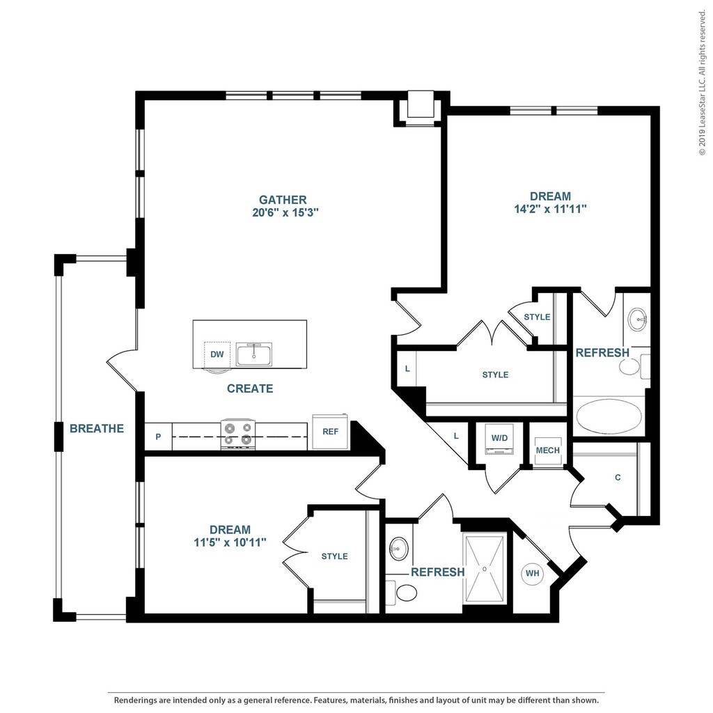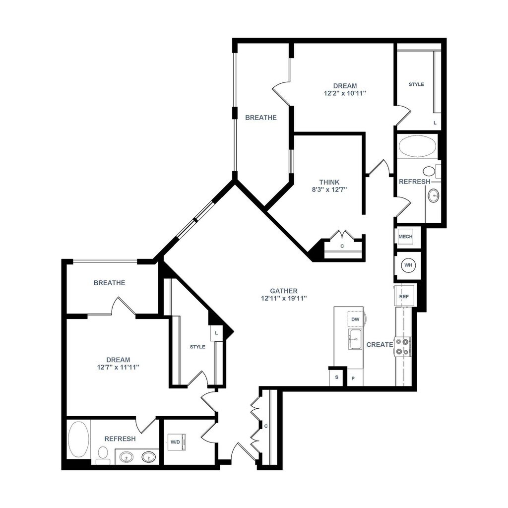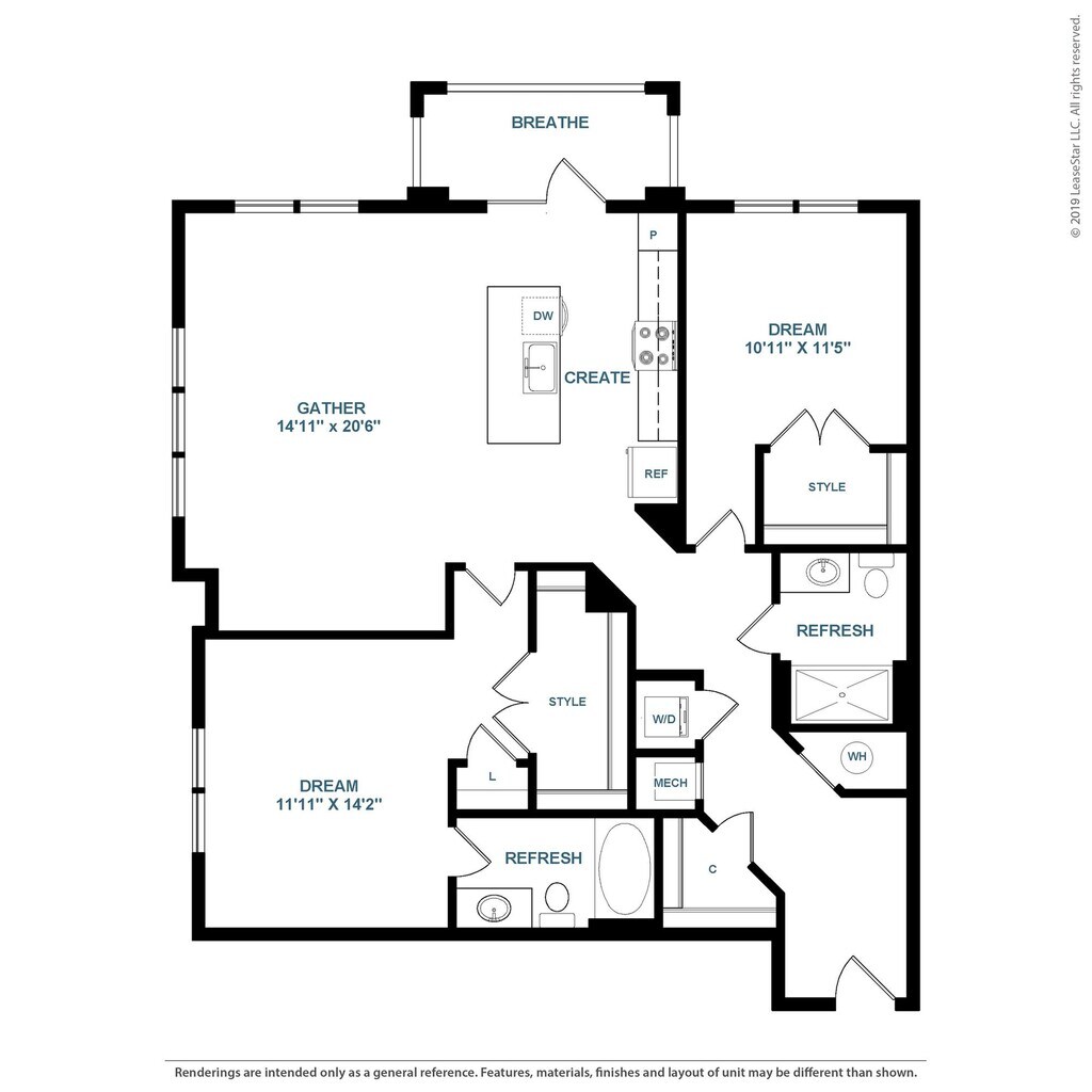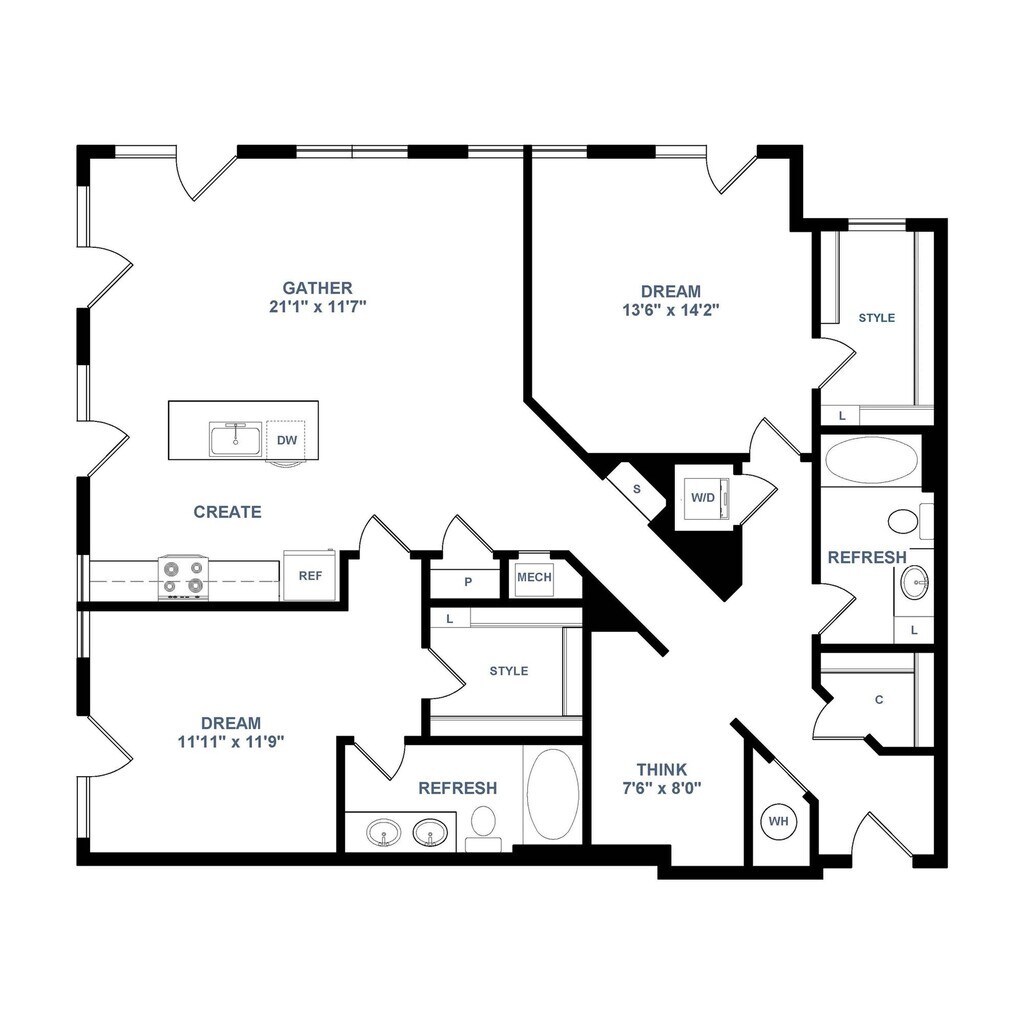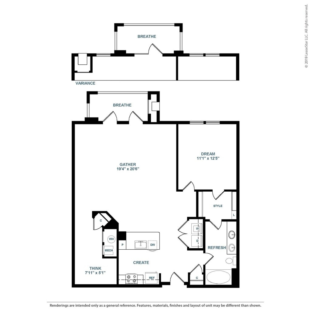 1 Bed, 1 Bath, 987 sq ftAvailable NowModel Gallery