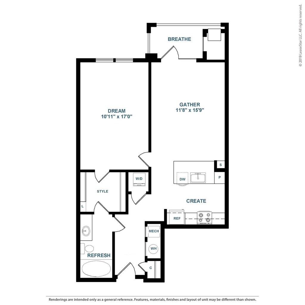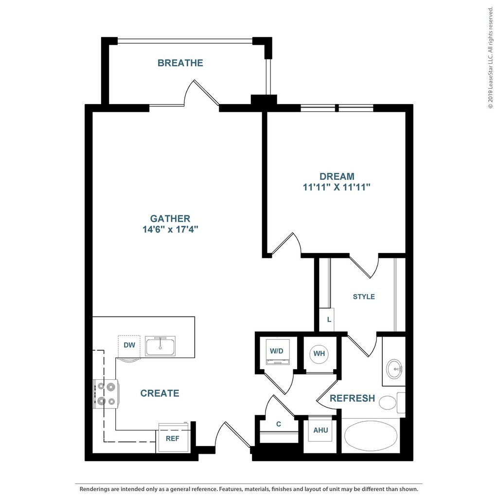 1 Bedroom/1 Bath - A01 - Floorplan 1 ![]()