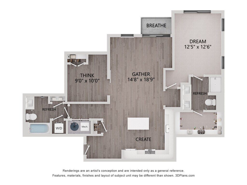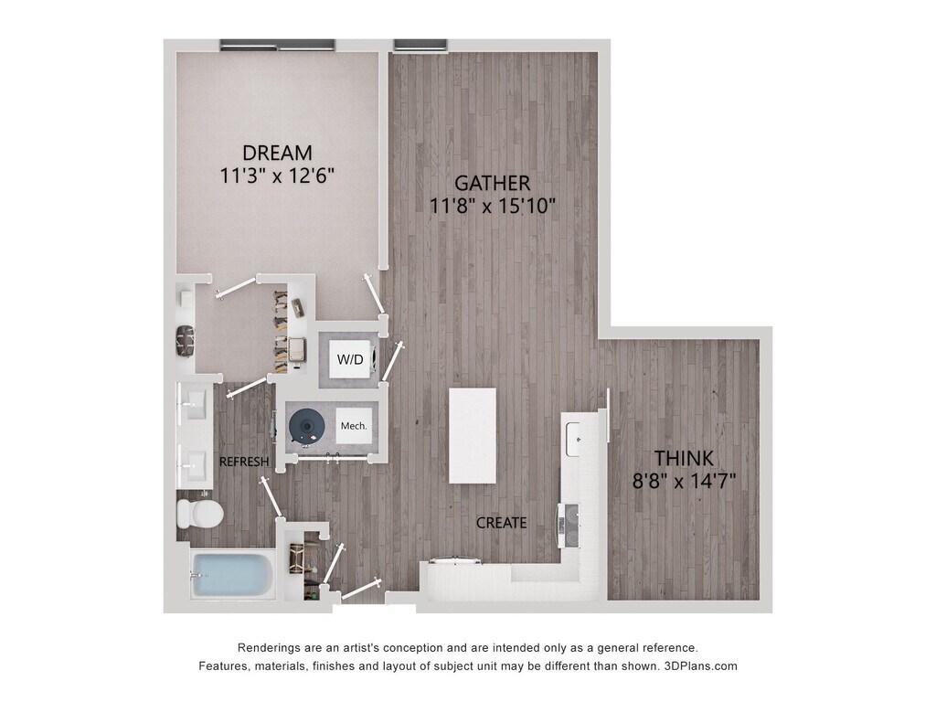 1 Bed, 1 Bath, 639 sq ftAvailable NowModel Gallery