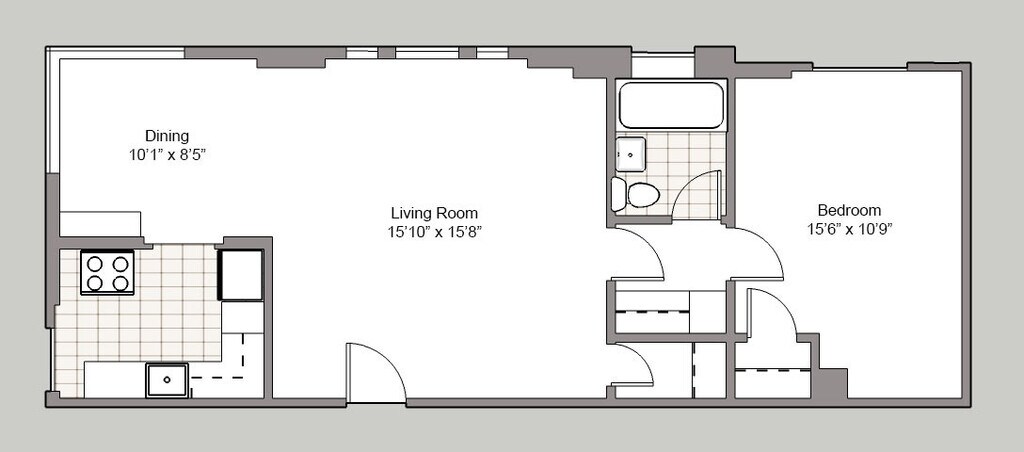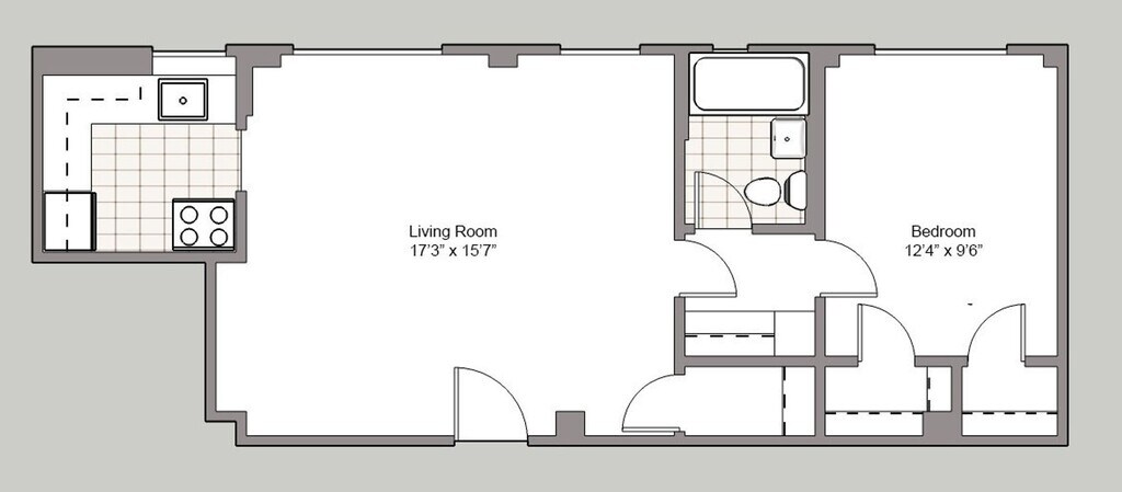 1 Bedroom ('05s) - Image 10 Apartment Unit: 405Apartment Model: 1 Bedroom ('05s)$1,3001 Bedroom, 1 Bath, 550 sq ftAvailable Now1 Bedroom Park View (#101, #501 & #601)