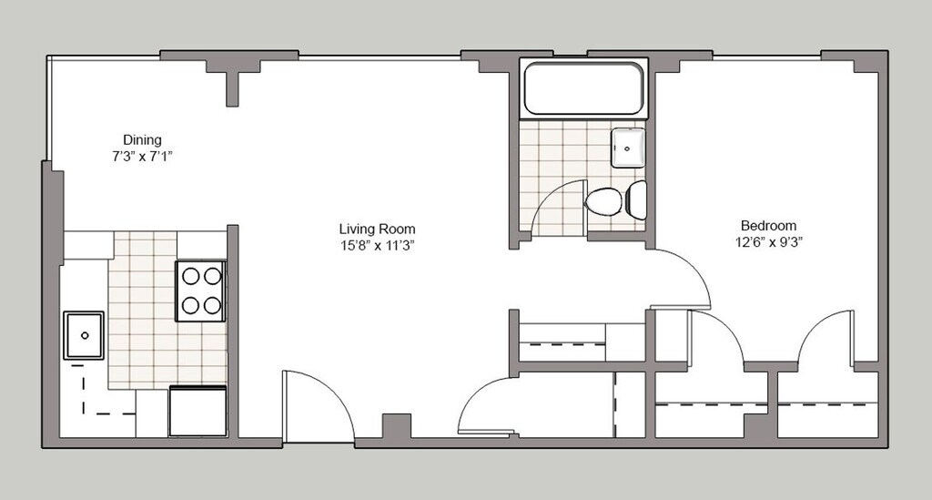 1 Bed, 1 Bath, 550 sq ftAvailable Mar 20Model Gallery