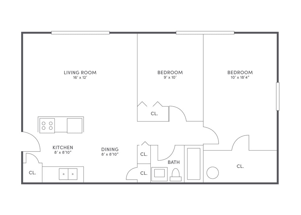 2 Beds, 1 Bath, 800 sq ftAvailable NowModel Gallery