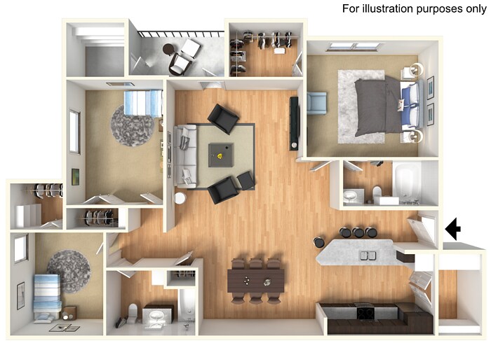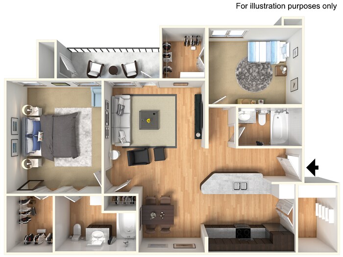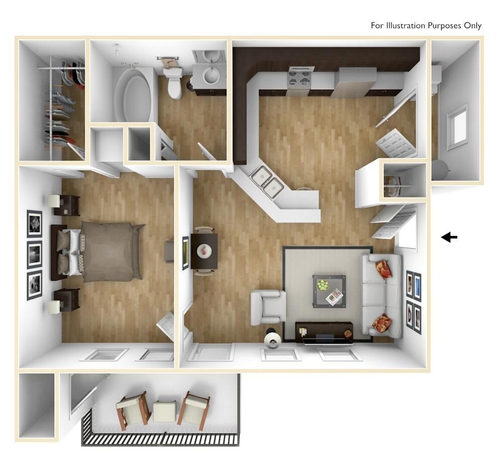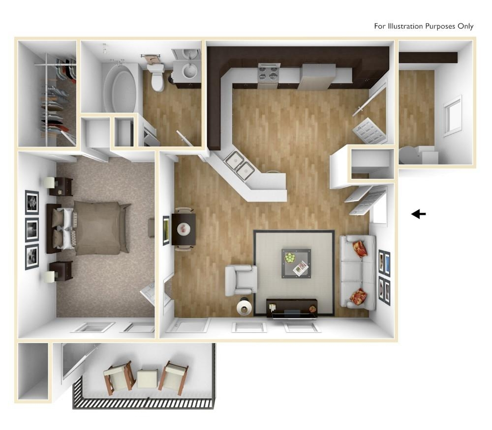 1 Bed, 1 Bath, 755 sq ftAvailable NowLargest 1 BedroomThis is the largest 1 Bedroom at this PropertyModel Gallery