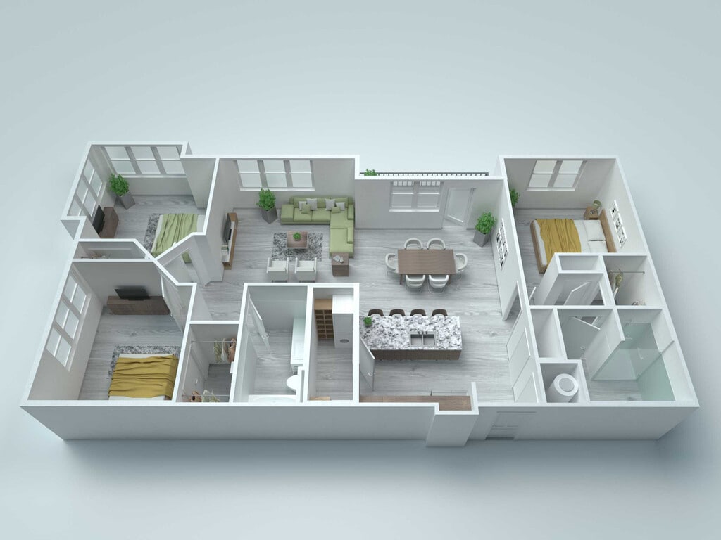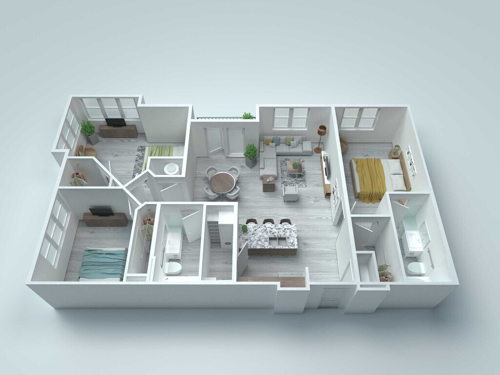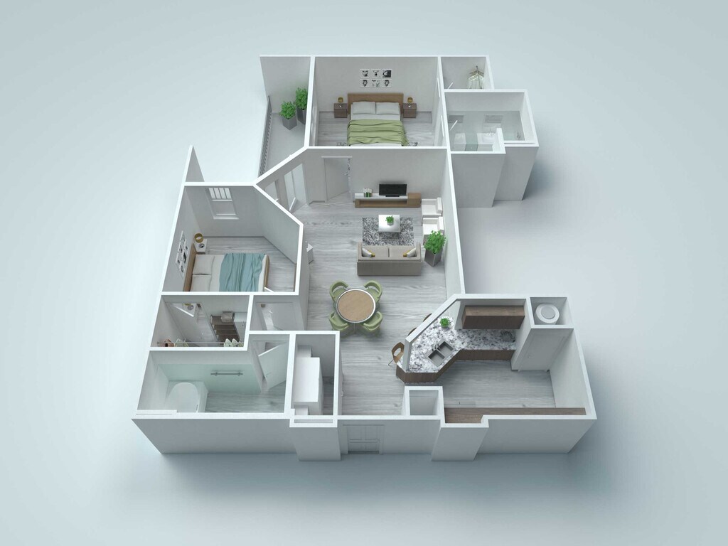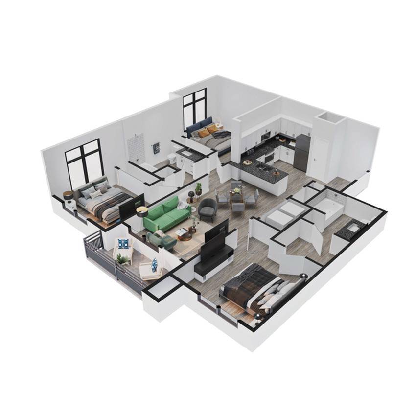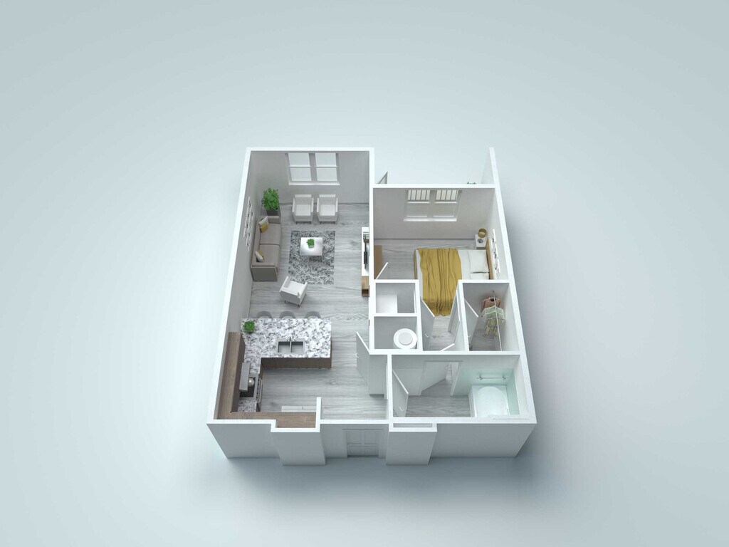 1 Bed, 1 Bath, 634 sq ftModel Gallery