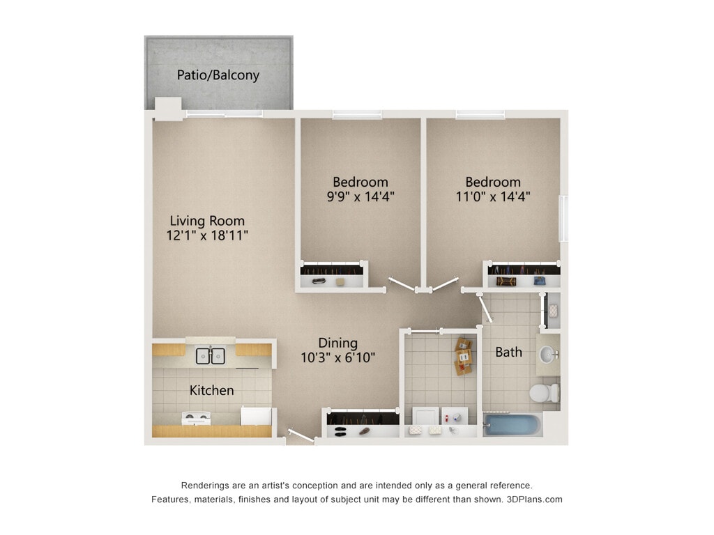 2 Beds, 1 Bath, 992 sq ftModel Gallery