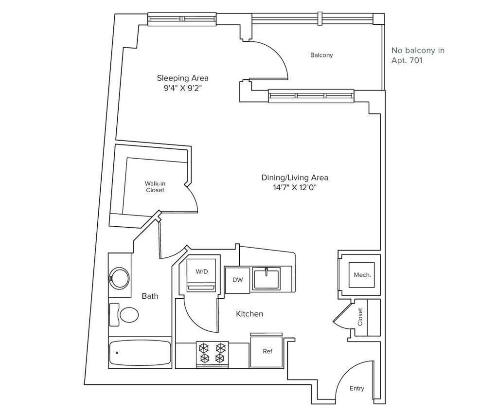 A4 - Floorplan 1 Apartment Unit: 102Apartment Model: A4$1,9351 Bedroom, 1 Bath, 693 sq ftAvailable NowFloorplan A8