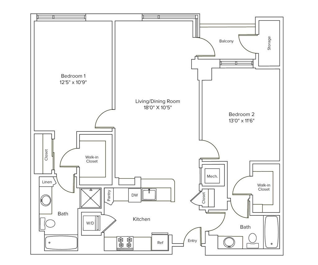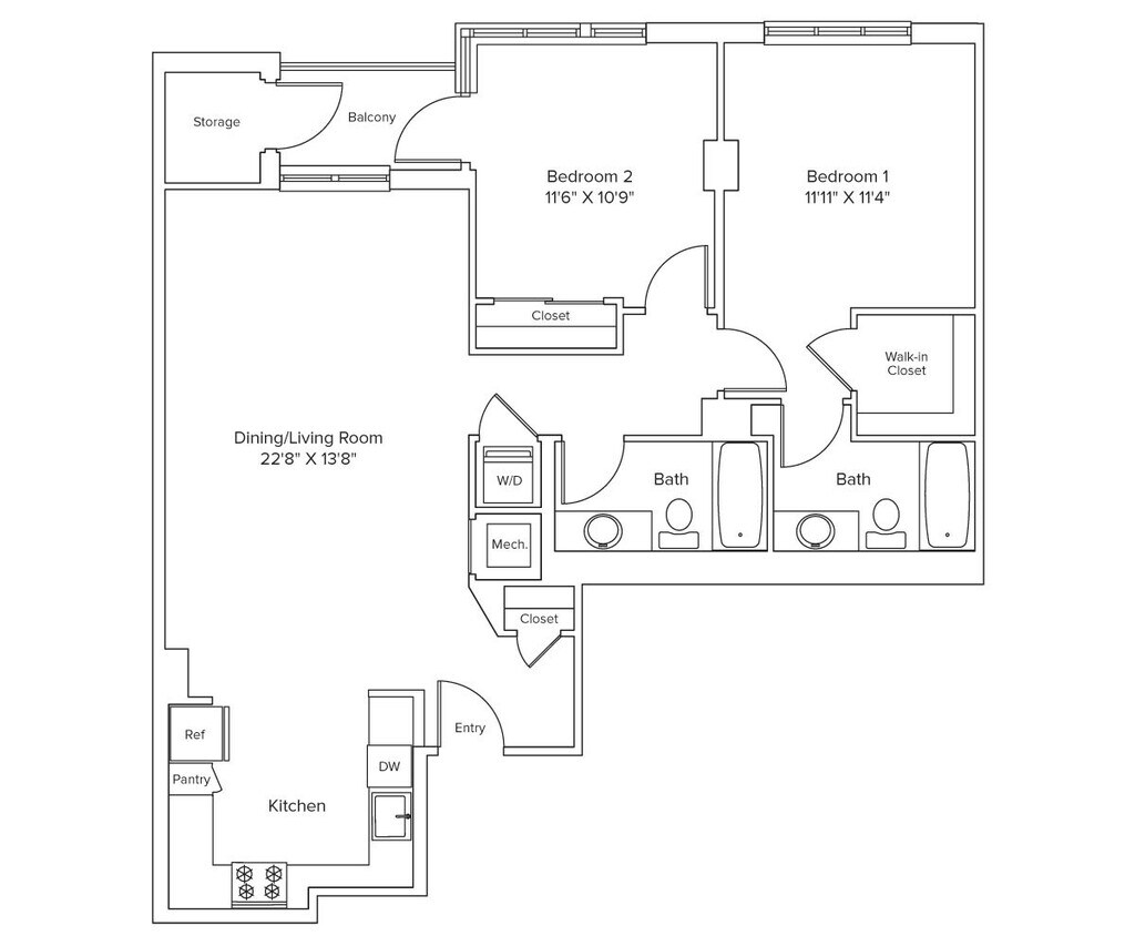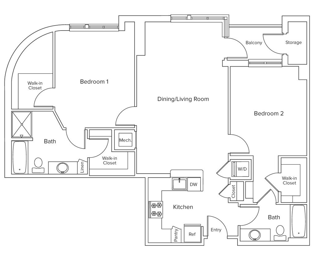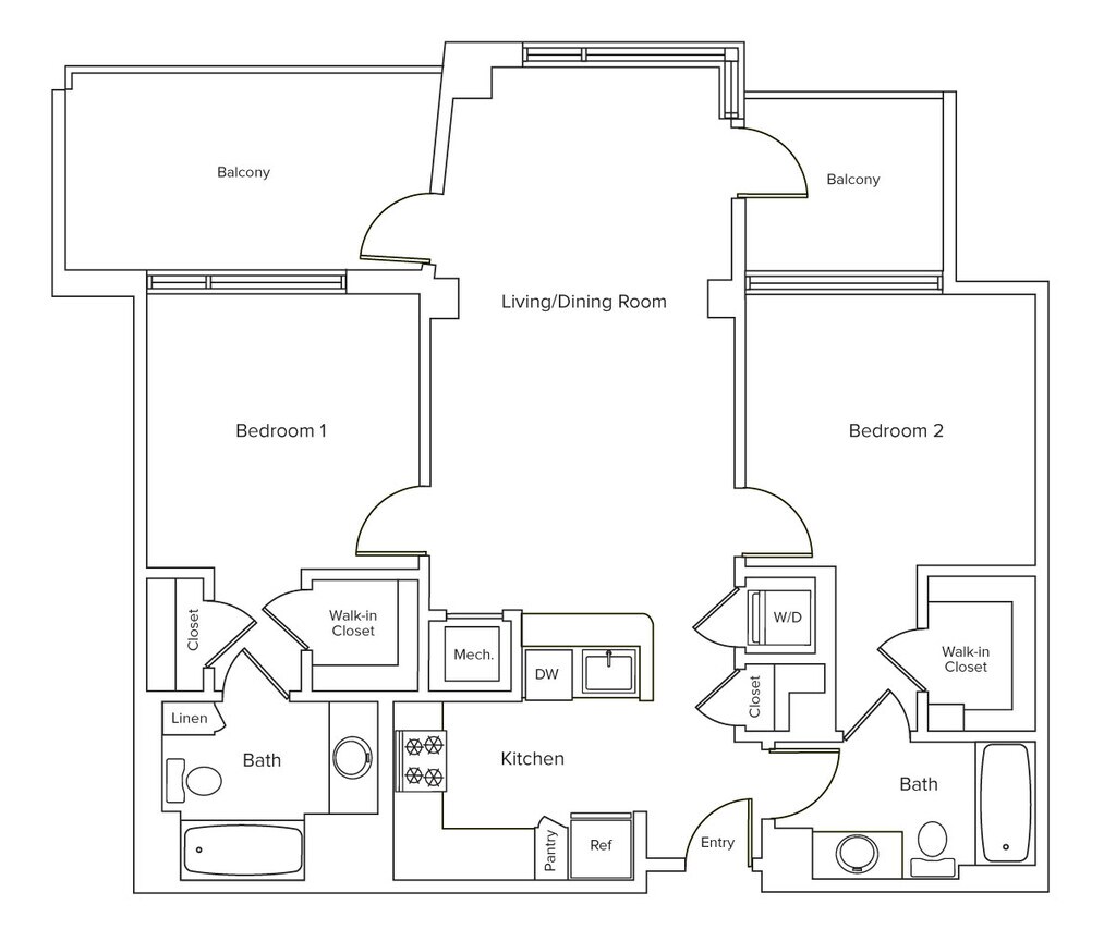 1 Bed, 2 Baths, 899 sq ftAvailable NowModel Gallery