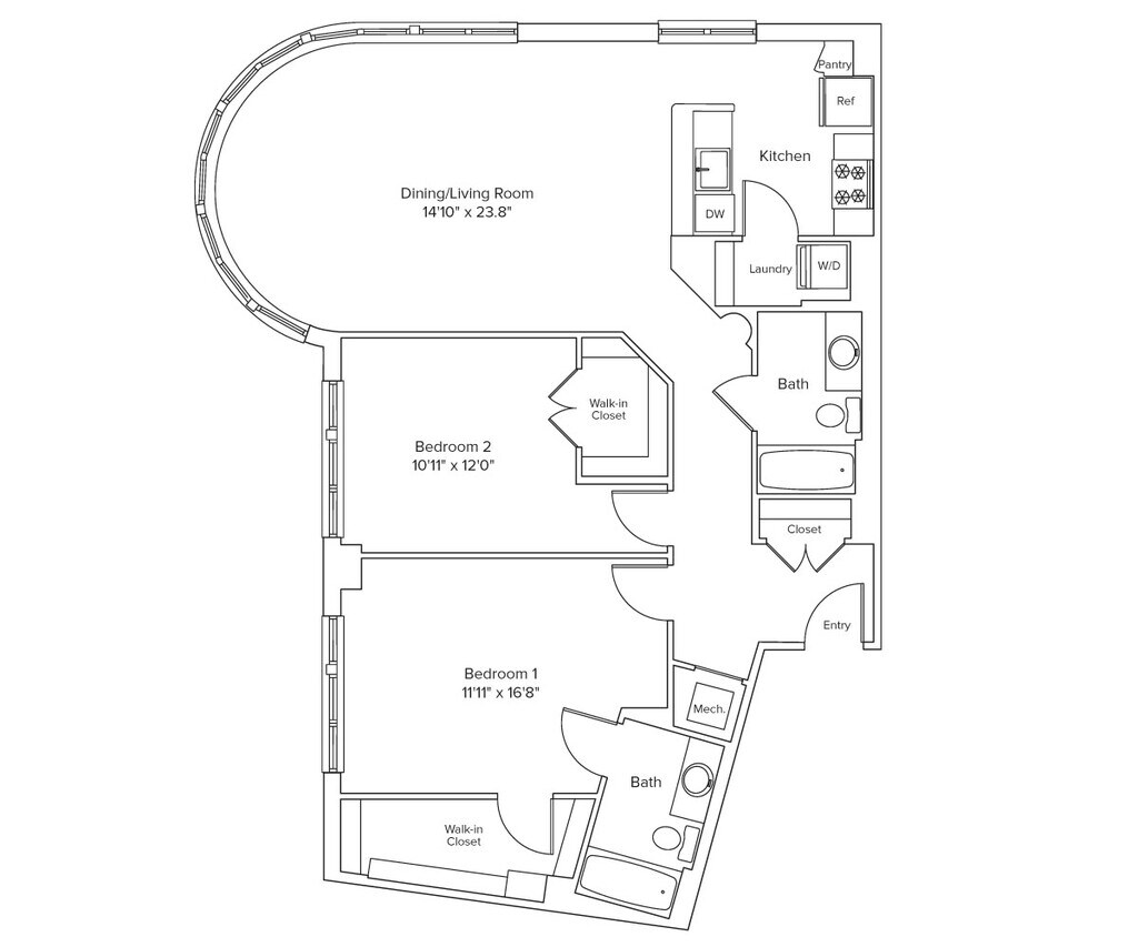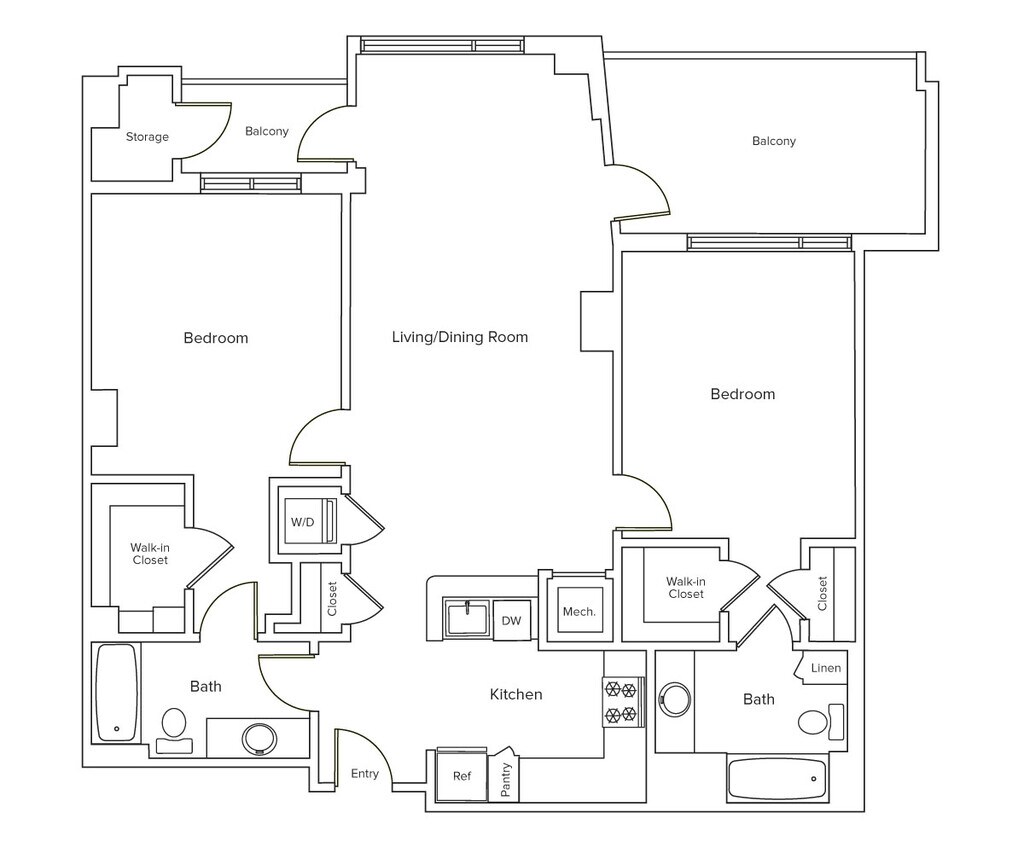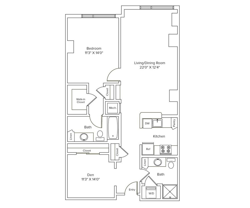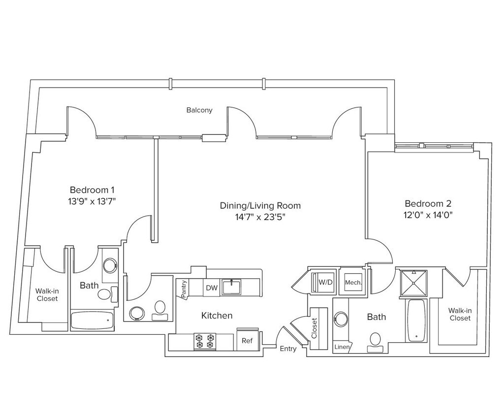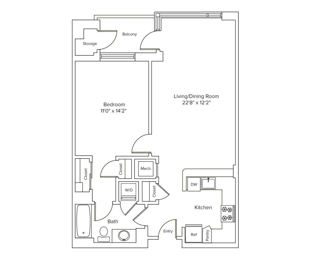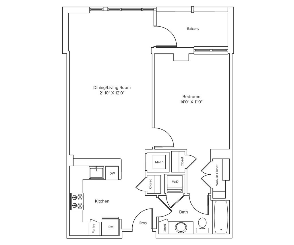 Apartment Model: A14DFrom $2,3531 Bedroom, 1 Bath, 997 sq ftAvailable NowFloor plans are artist's rendering. All dimensions are approximate. Actual product and specifications may vary in dimension or detail. Not all features are available in every rental home. Prices and availability are subject to change. Base rent is based on monthly frequency. Additional fees may apply, such as but not limited to package delivery, trash, water, amenities, etc. Deposits vary. Please see a representative for details.