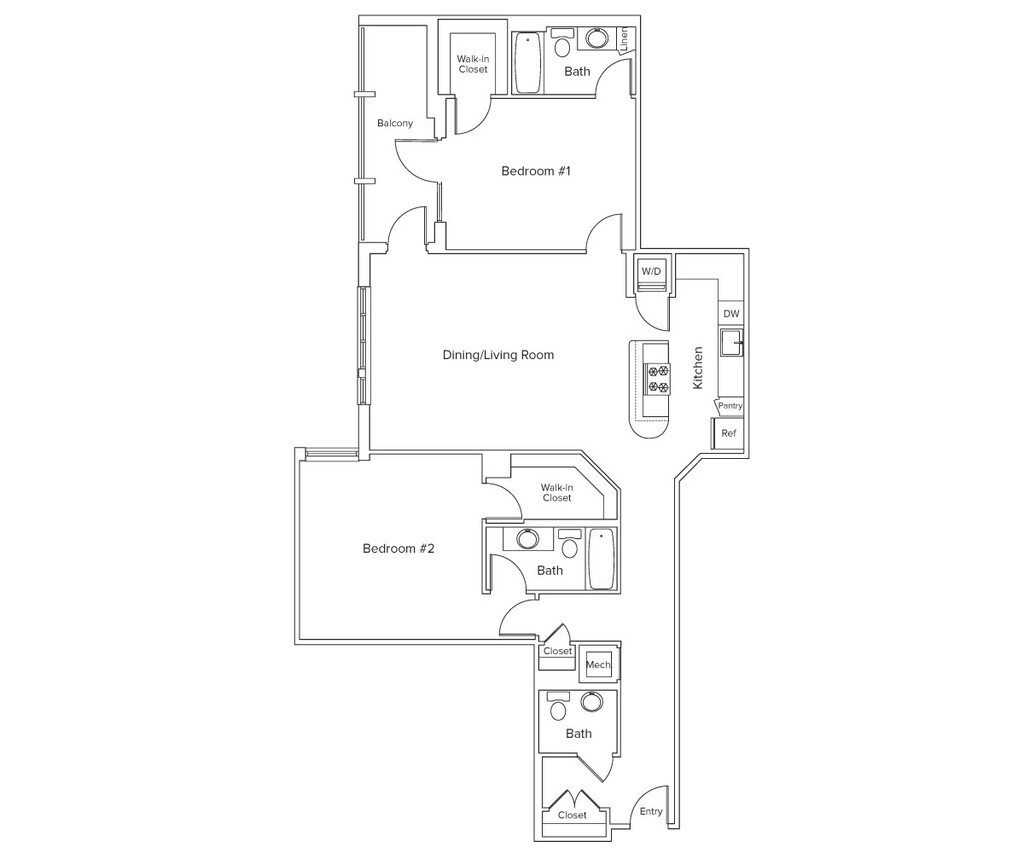 1 Bed, 2 Baths, 1006 sq ftAvailable NowModel Gallery
