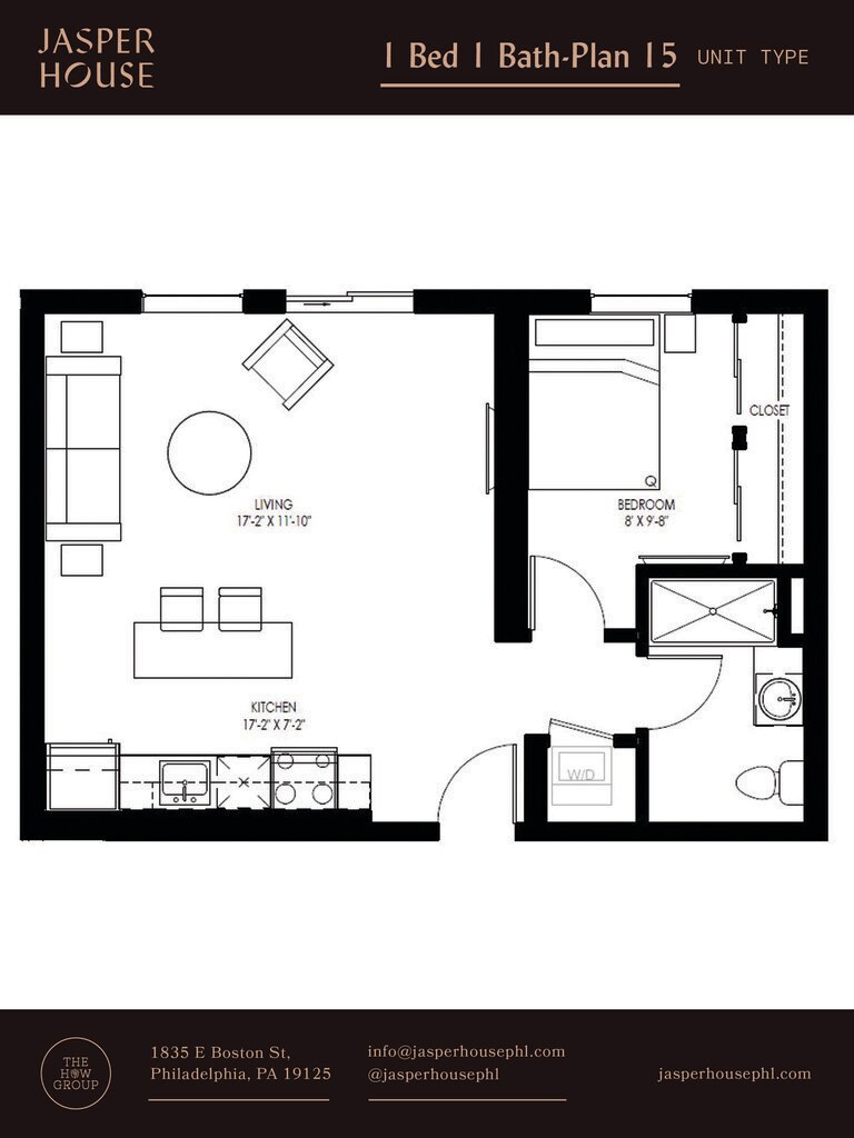 Located in a thriving section of Philadelphias Kensington neighborhood Jasper House is a new and unique building of apartments. Featuring artist lofts, studios, and one-, and two-bedroom floor plans. Our design-forward apartment homes include hospitality-level amenities, quartz countertops, matte black fixtures, and full tile baths. Hang out with friends on the roof deck, get your morning coffee at the ground floor Win Win Coffee, or partake in the community garden maintained by FarmerJawn. Just off the El Market Frankford line and blocks from the energy of Fishtown, youll find sought-after food, drink, and music spots nearby. Contact our leasing office to schedule a tour!