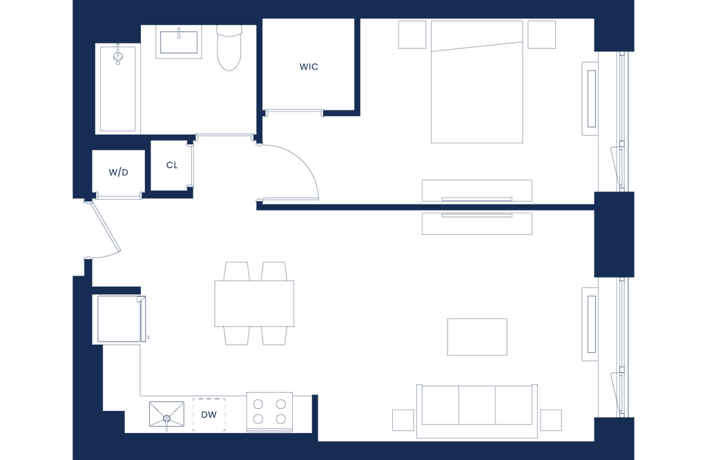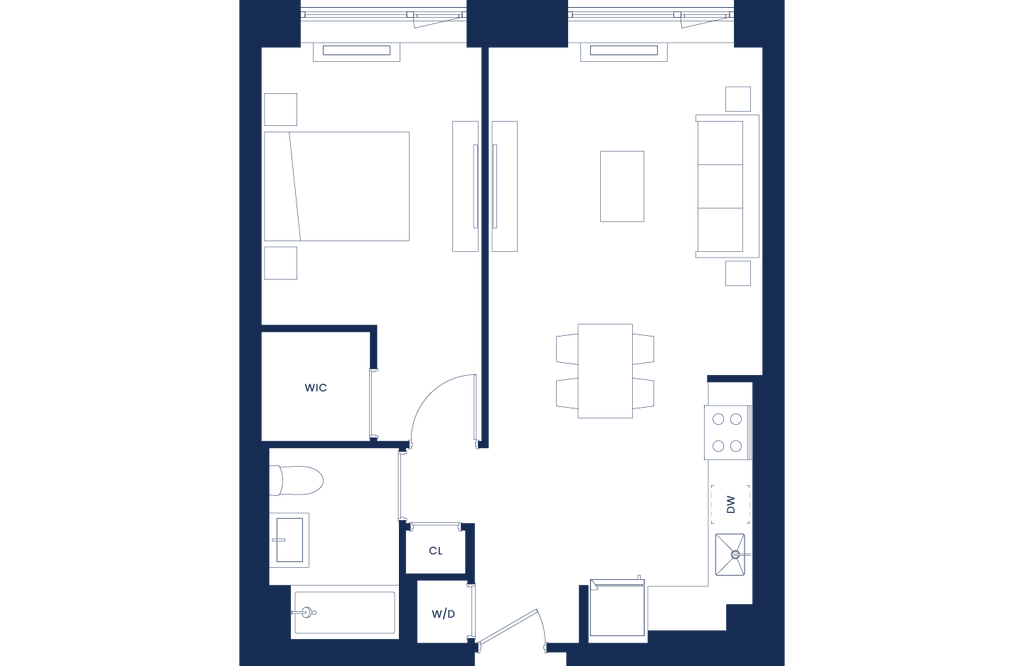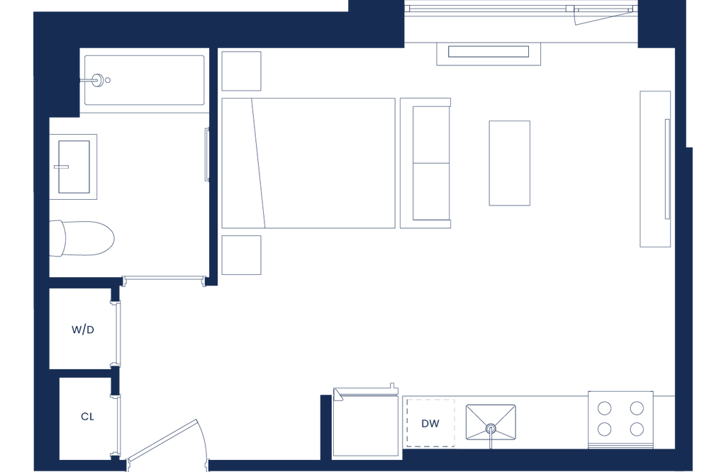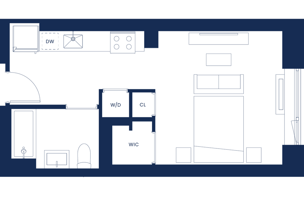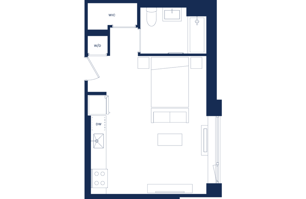 Studio Classic West Floors 4-12 - Floorplan 1 Apartment Unit: W1207Apartment Model: Studio Classic West Floors 4-12Studio, 1 Bath, 447 sq ftAvailable NowStudio Classic West Floors 2-12