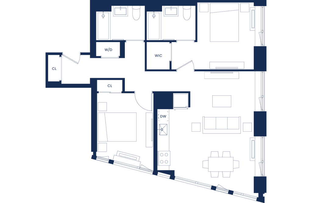 Apartment Model: 2 Bedroom Lux West Floors 8-102 Bedroom, 2 Bath, 1102 sq ftUnavailable![]()