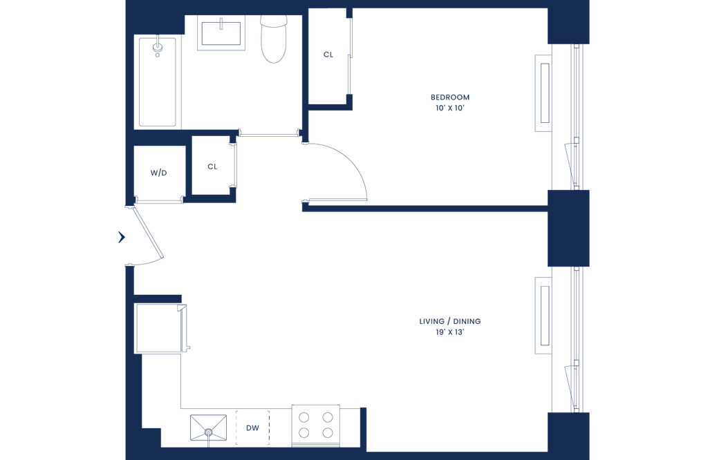 Studio Classic West Floors 2-12 - Floorplan Apartment Unit: W305Apartment Model: Studio Classic West Floors 2-12Studio, 1 Bath, 455 sq ftAvailable May 16, 2026Studio Classic West Floors 4-12