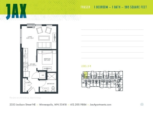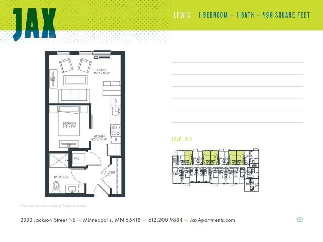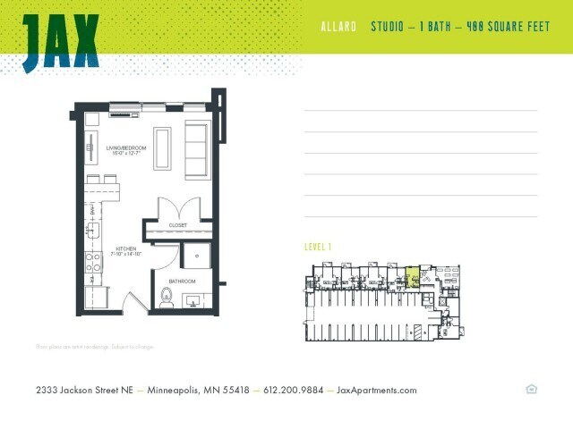 Modern Living in Northeast Minneapolis - Our beautiful, modern and stylish one bedroom apartments offer stainless steel appliances and remote access thermostats. Tall ceilings with over sized windows provide tons of light throughout the unit. Building amenities include a scenic rooftop deck equipped with a fire pit and grill, 700 sq. ft. art studio, 24/7 on-site fitness center, heated garage parking, on-site bike storage, luxurious club room, and secure parcel delivery room. JAX is located in the historically diverse Northeast Minneapolis Arts District, offering you everyday access to a wide variety of cultural cuisines, arts, events, nightlife and more. When the mood strikes, walk to Central Avenue for Thai, Mexican or Middle Eastern eats. Bike to Jackson Square Park for a little sun and softball. Or head riverside for drinks with friends at Betty Dangers. Then come home to stylish apartment living that delivers modern convenience while preserving the planet. (RLNE4685165)