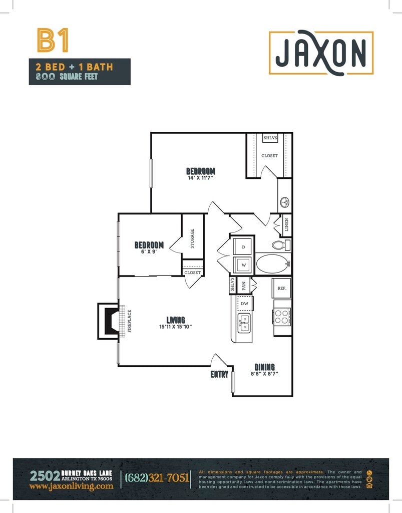 Apartment Model: B1 (One bedroom w/ Study)From $1,2002 Bedroom, 1 Bath, 800 sq ftAvailable Now![]()