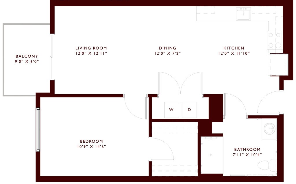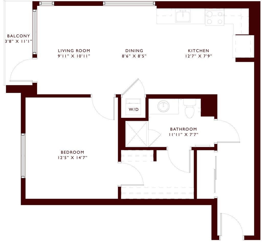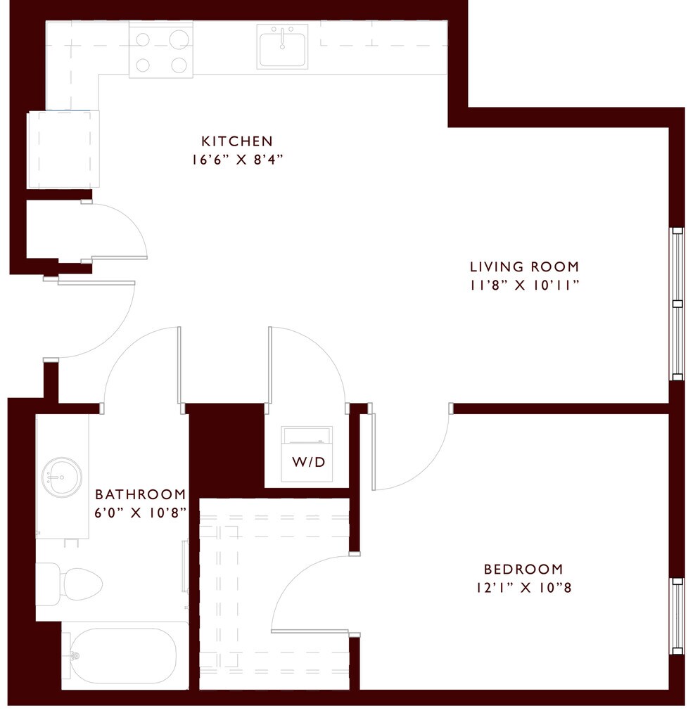 1 Bed, 1 Bath, 511 sq ftModel Gallery