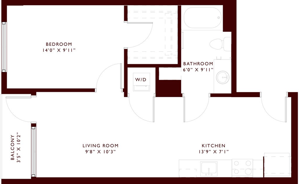 A11 - Floorplan 1 Apartment Unit: 214Apartment Model: A11From $2,2761 Bedroom, 1 Bath, 850 sq ftAvailable NowFloorplan A5