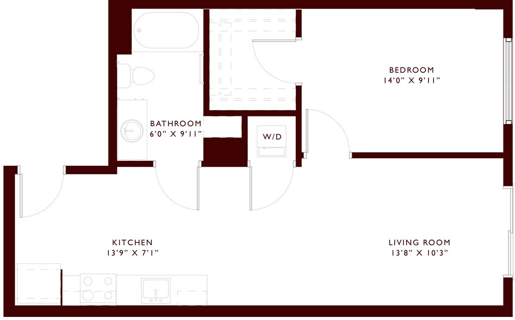 1 Bed, 1 Bath, 693-696 sq ftAvailable January 16, 2026Model Gallery
