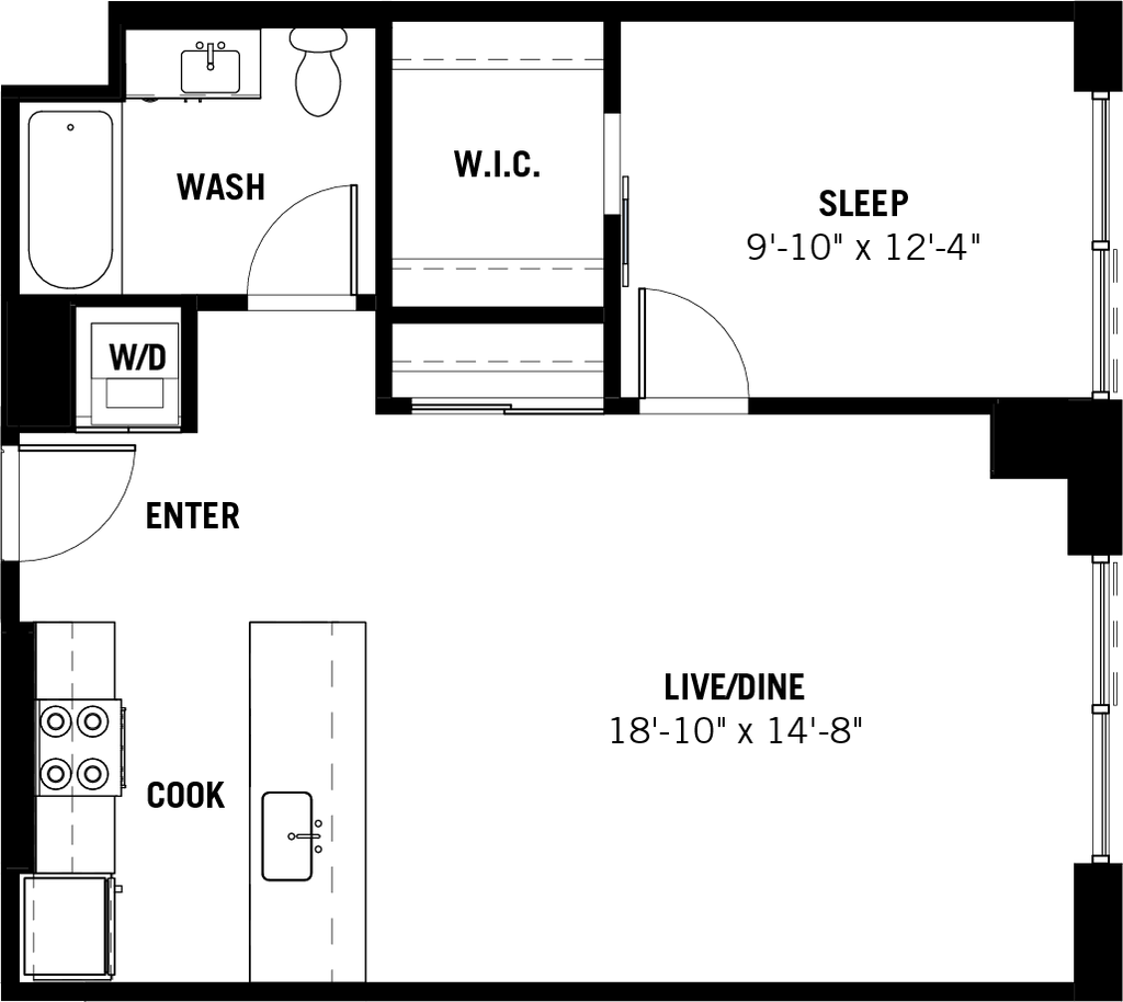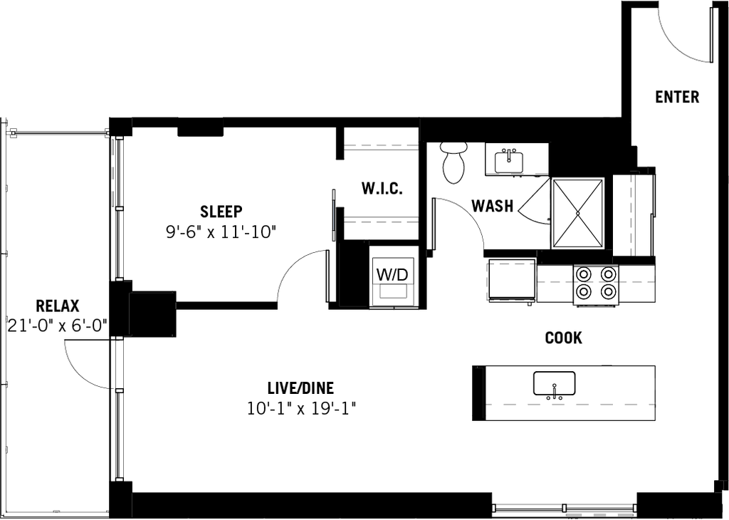 Studio 06 - Floorplan 1 Apartment Unit: 0606Apartment Model: Studio 06$2,267Studio, 1 Bath, 480 sq ftAvailable NowStudio 11