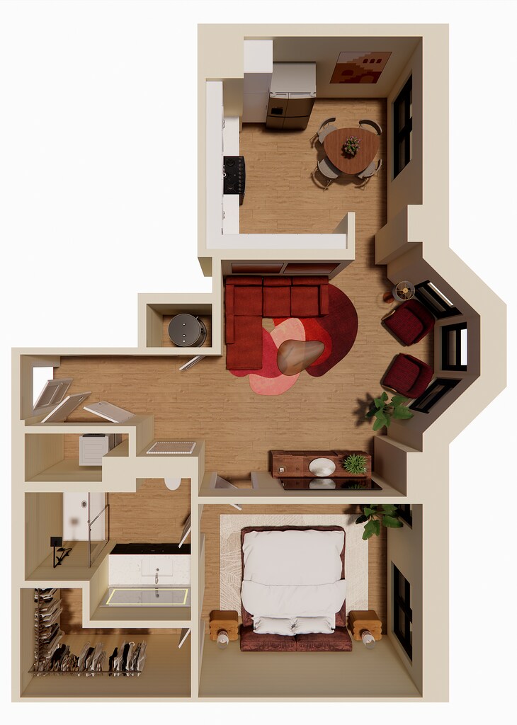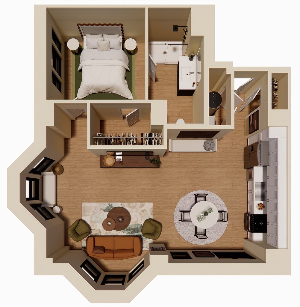 1 Bed, 1 Bath, 579 sq ftAvailable NowModel Gallery