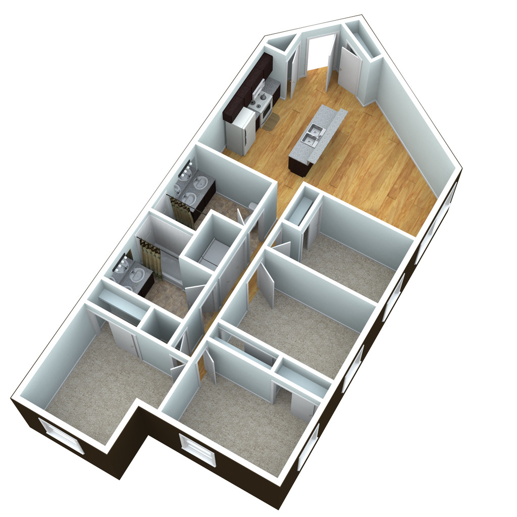 4 Beds, 2 Baths, 1200 sq ftModel Gallery