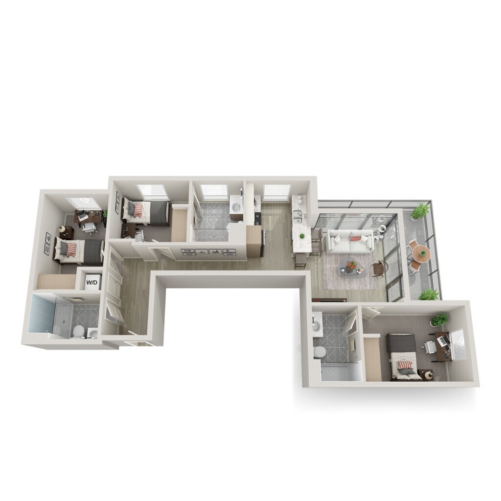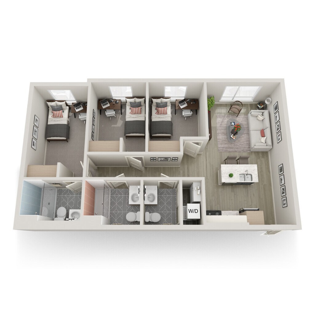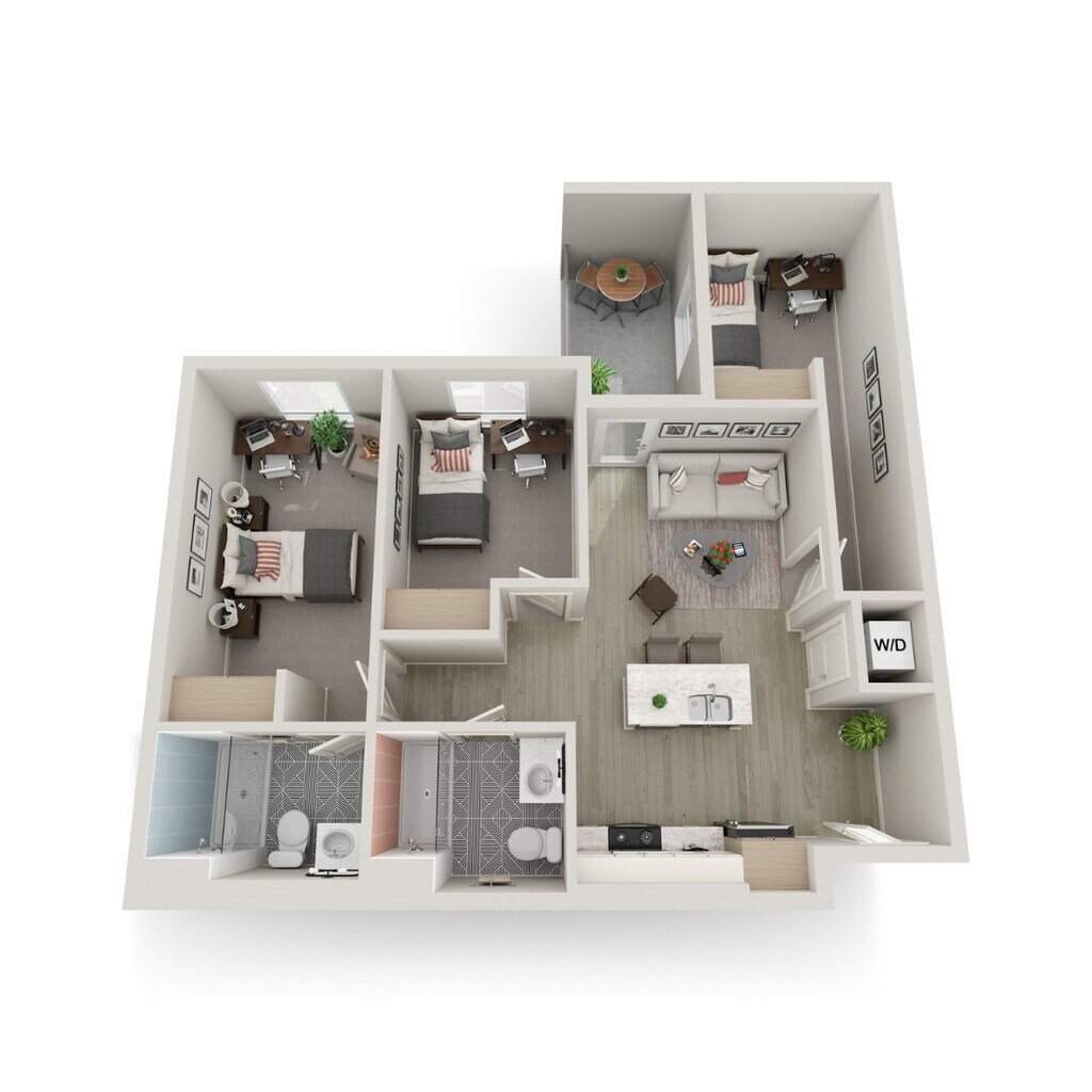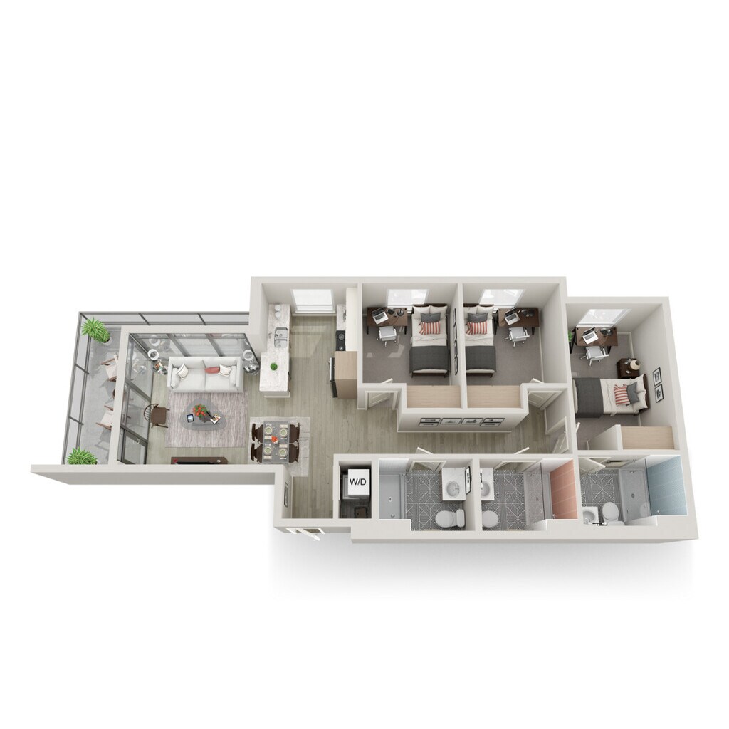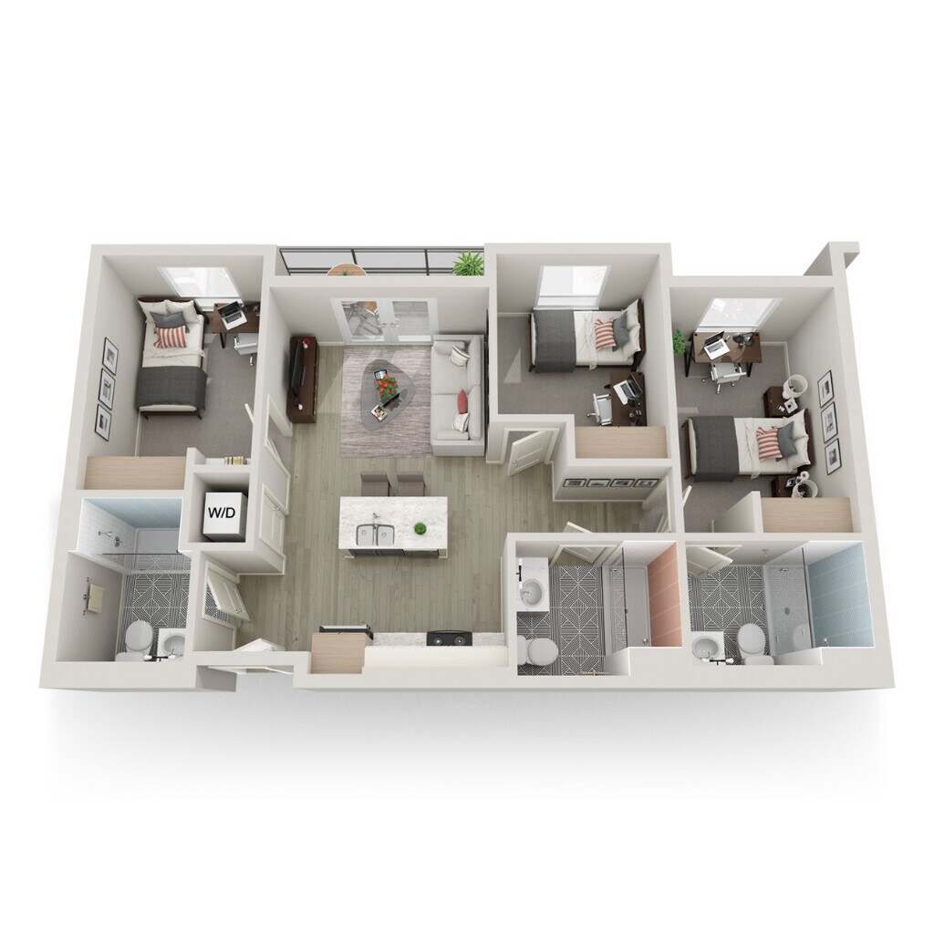 Apartment Model: 3 Bed 2 Bath CFrom $1,3993 Bedroom, 2 Bath, 767 sq ftAvailable Now![]()