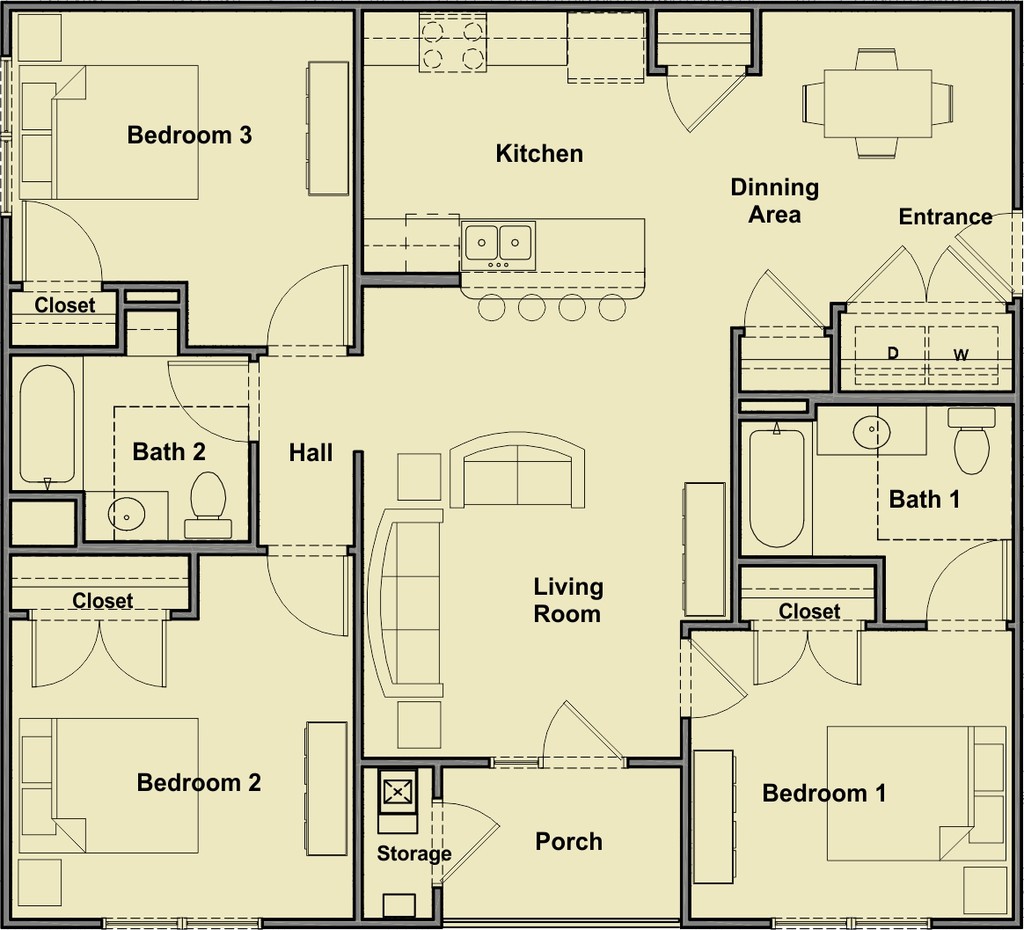 3 Beds, 2 Baths, 1180 sq ftAvailable NowModel Gallery