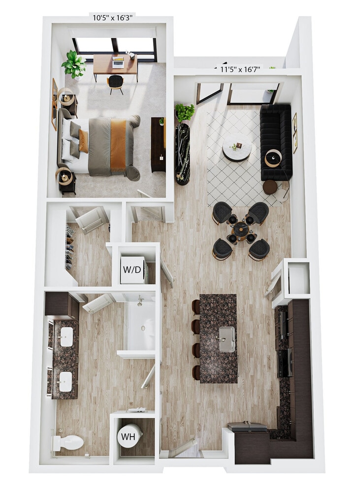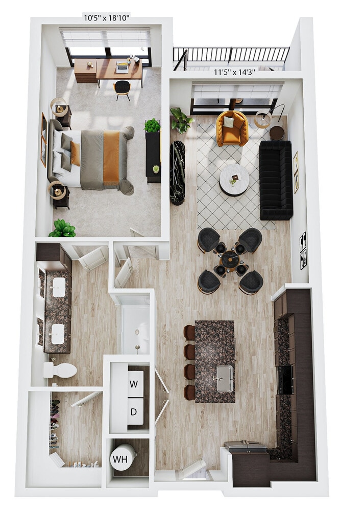 Apartment Model: E1From $1,435Studio, 1 Bath, 618 sq ftAvailable January 1, 2027![]()