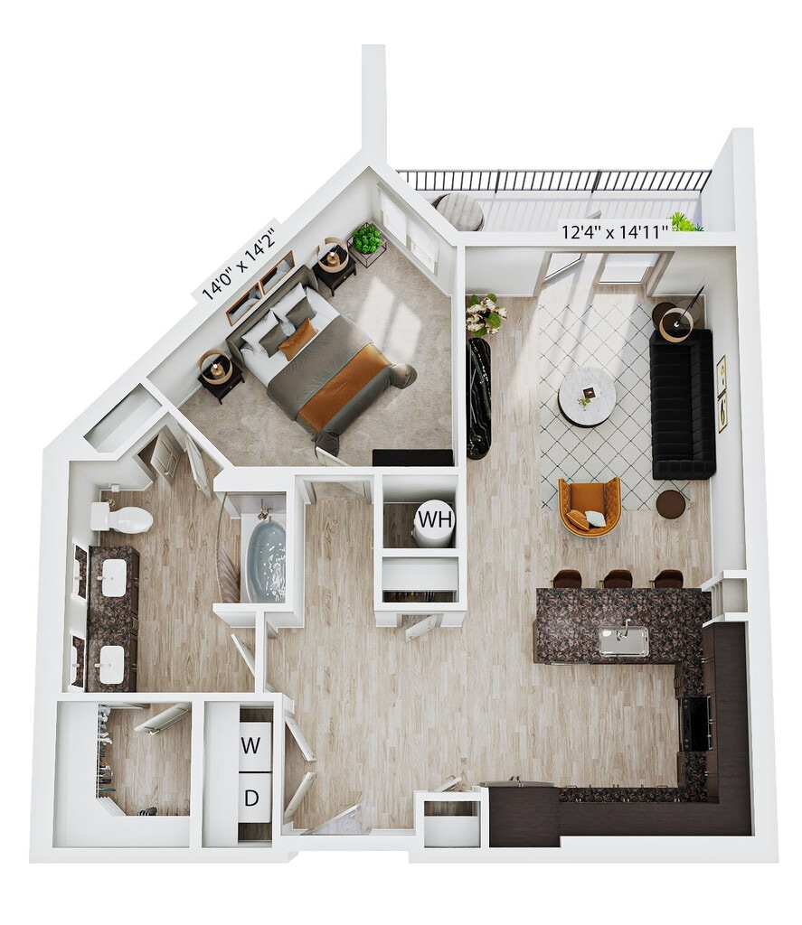 Studio, 1 Bath, 618 sq ftAvailable January 1, 2027Model Gallery