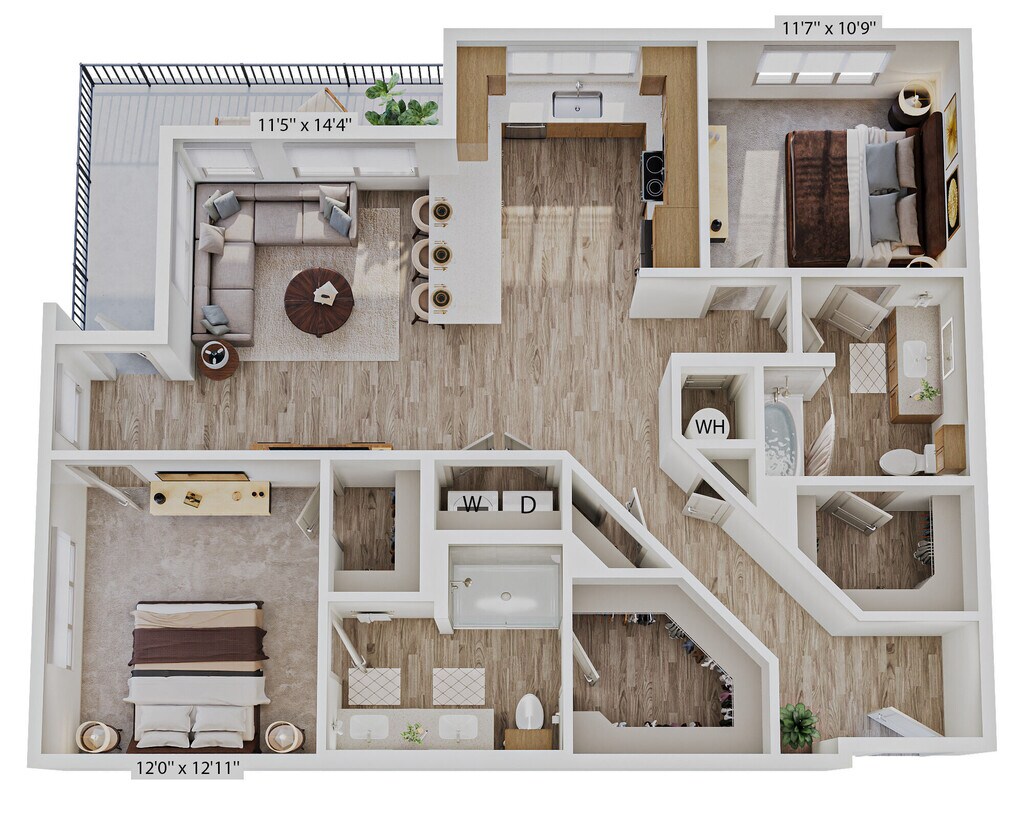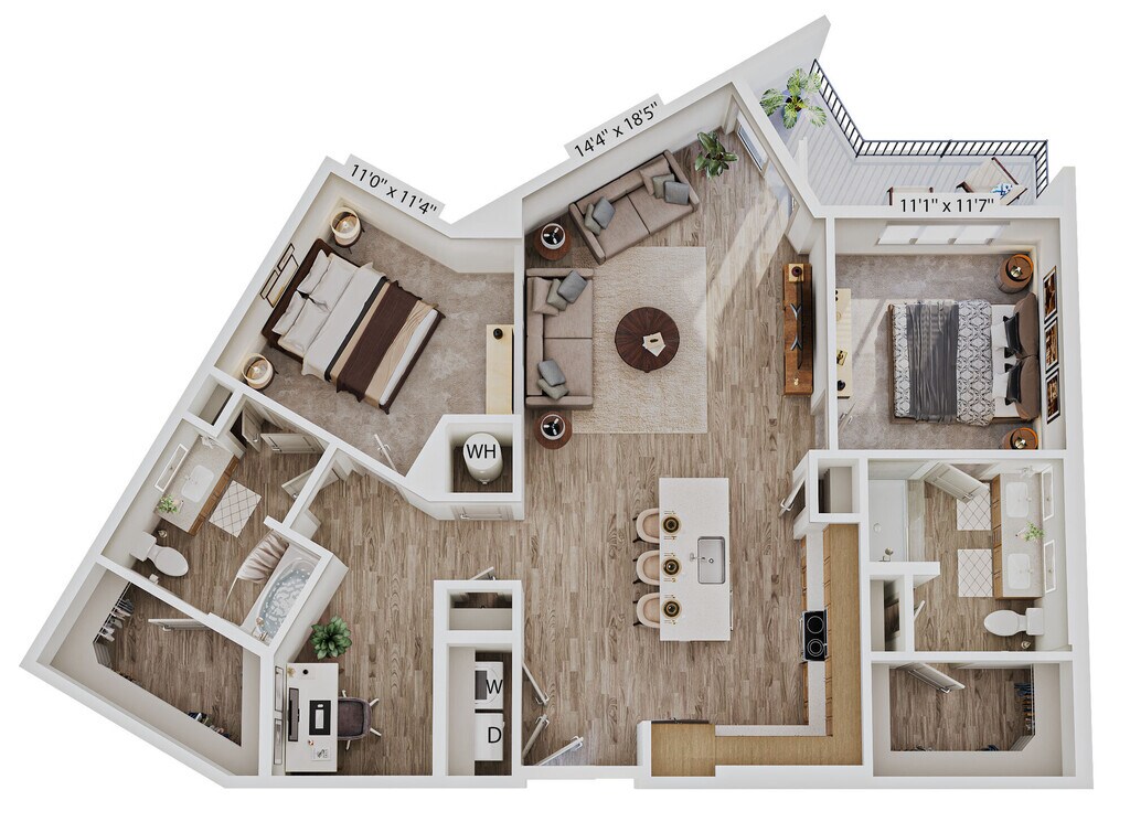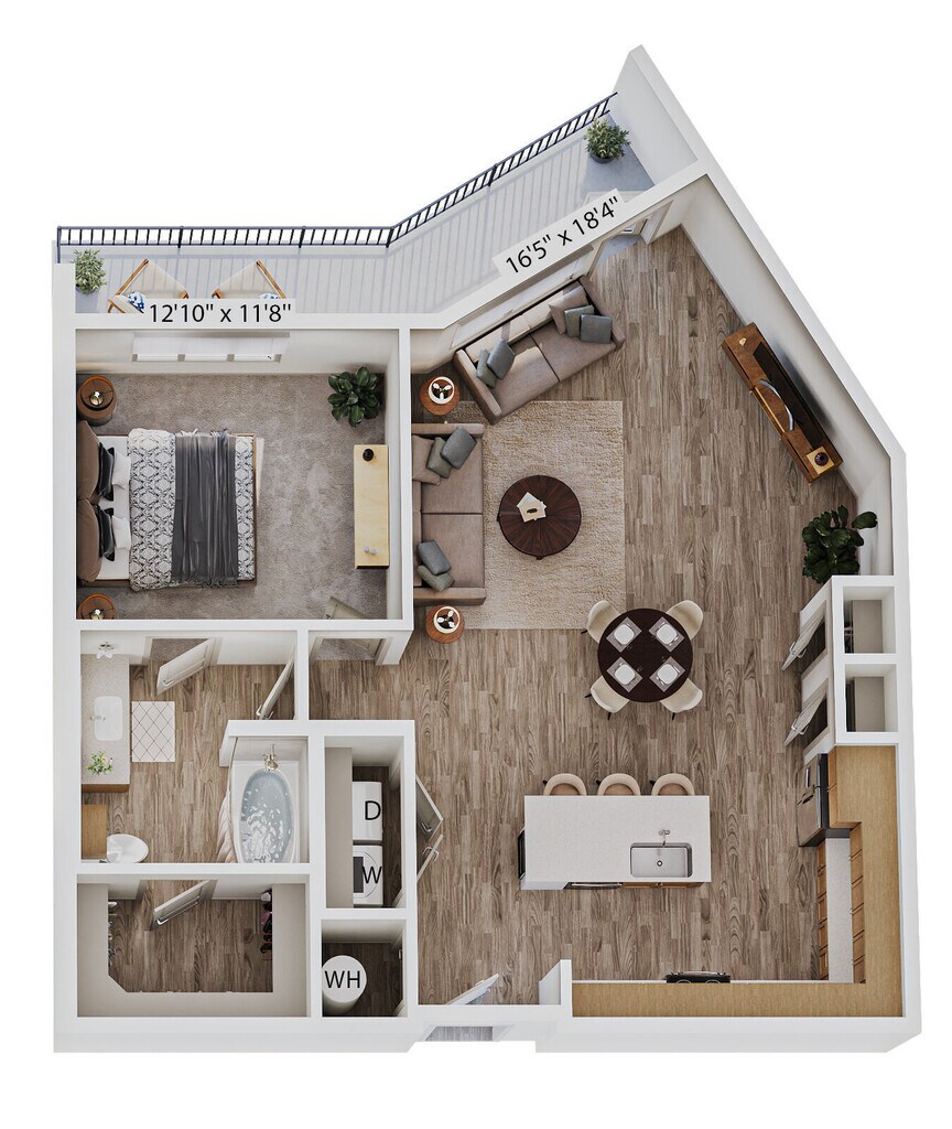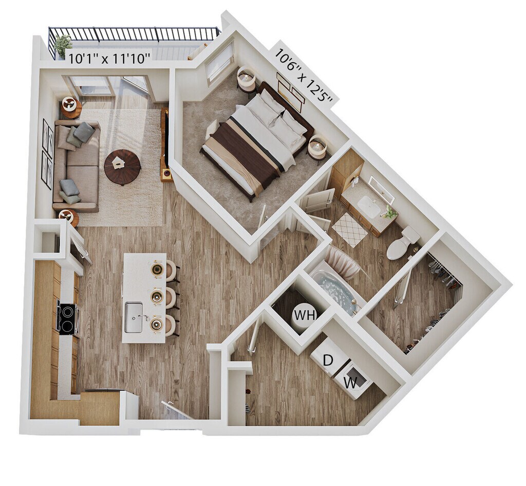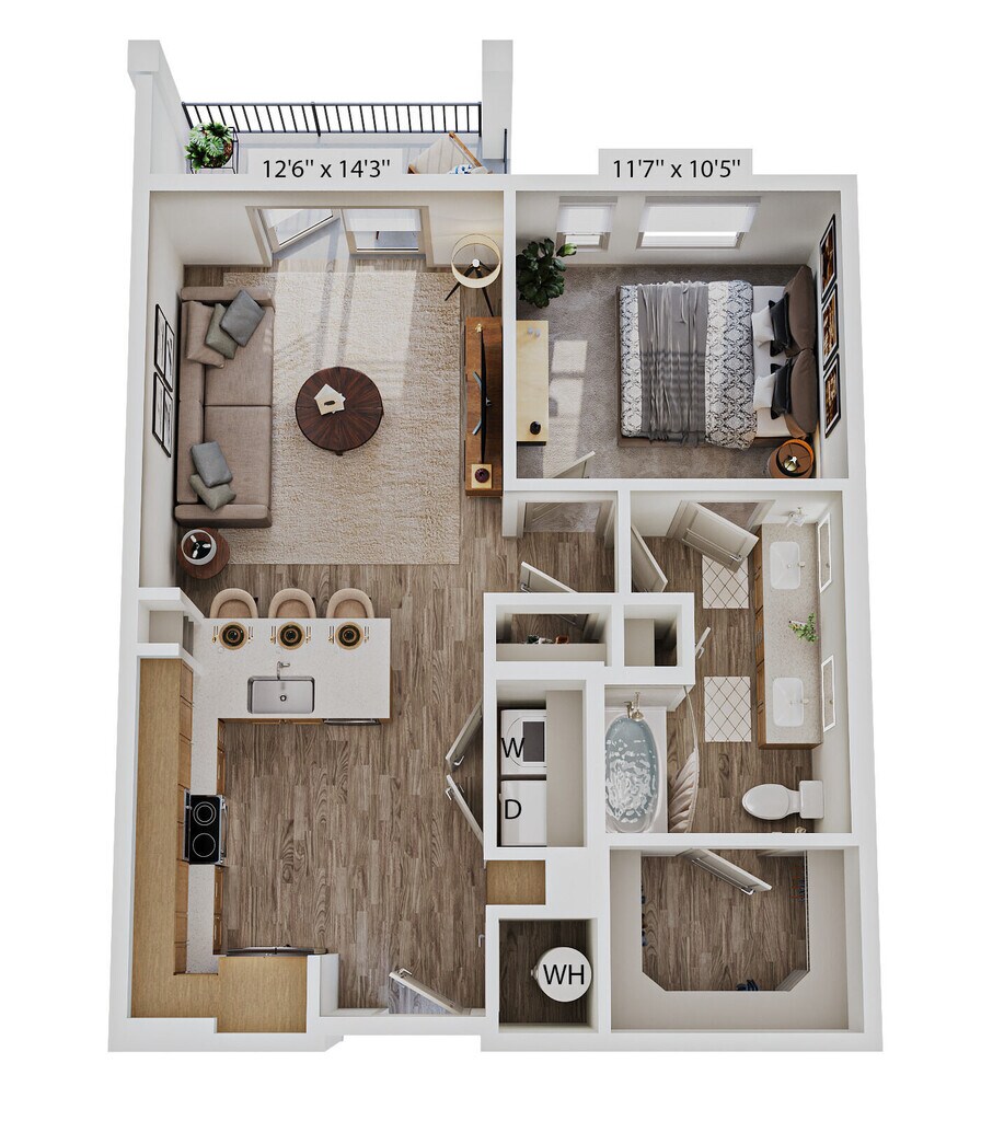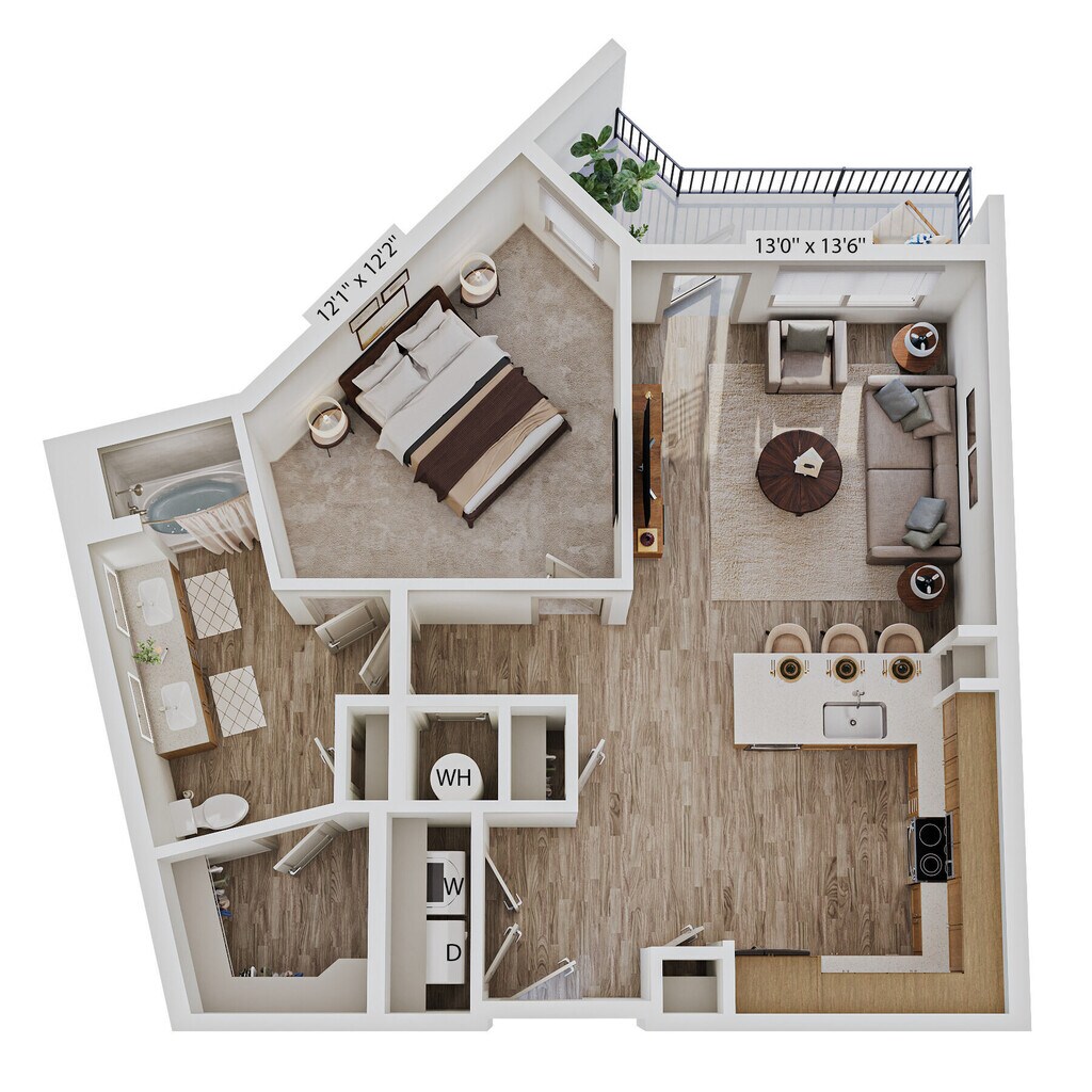 Apartment Model: A5From $1,6201 Bedroom, 1 Bath, 721 sq ftAvailable February 3, 2026![]()