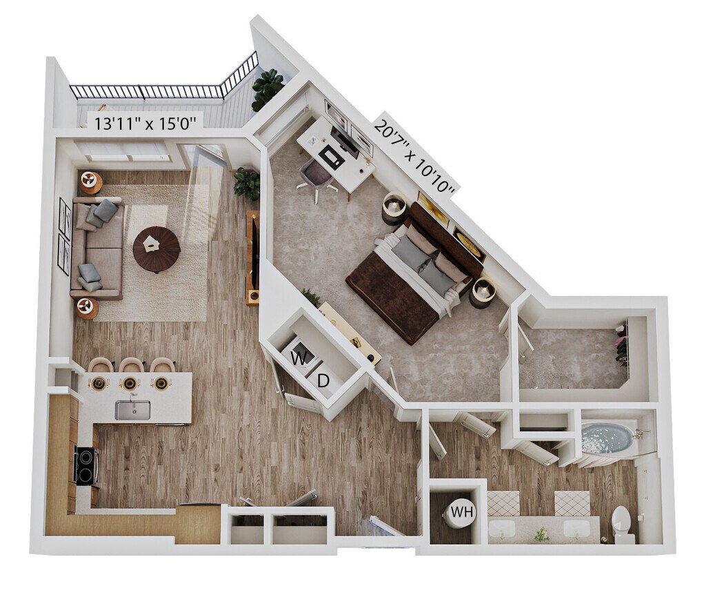 1 Bed, 1 Bath, 690 sq ftAvailable February 3, 2026Model Gallery