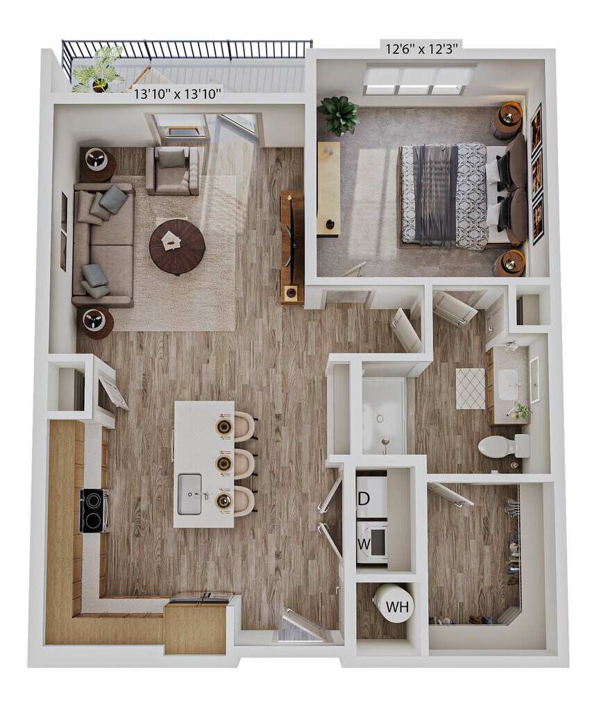 1 Bed, 1 Bath, 750 sq ftAvailable February 3, 2026Model Gallery