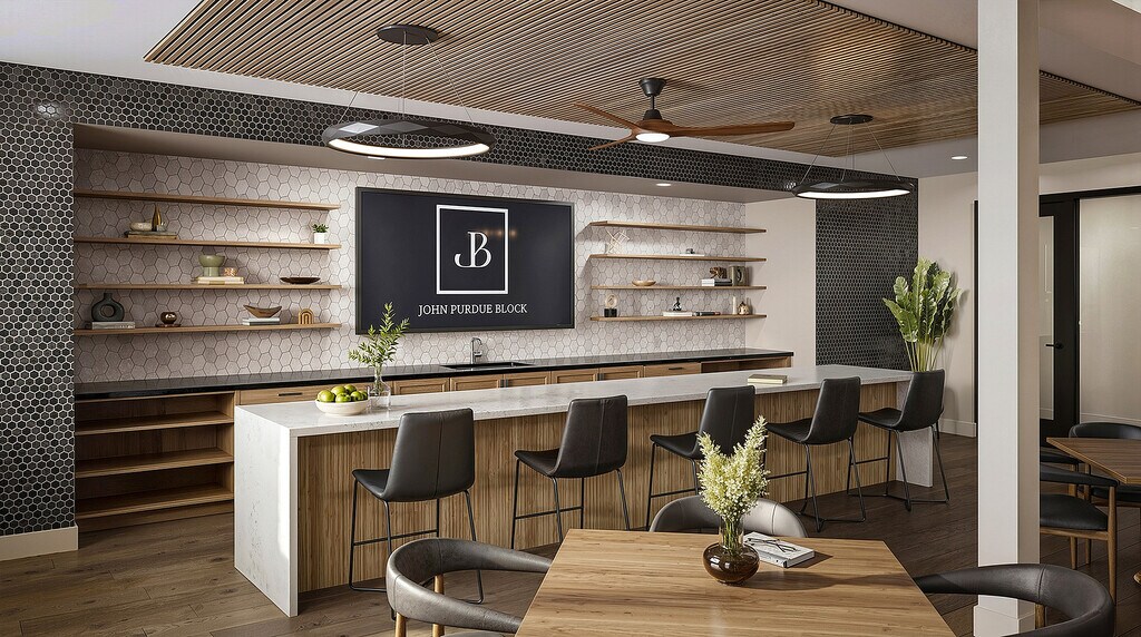 Discover John Purdue Block Apartments, a landmark mixed-use development in downtown Lafayette, IN, redefining luxury apartment living. This visionary apartment building spans an entire city block, blending the restoration of the historic John Purdue Building with a new six-story structure featuring 157 upscale apartment homes, modern retail and commercial space, and a parking garage. Each apartment is designed for contemporary comfort with open layouts, oversized windows, high ceilings, private balconies, premium finishes, and smart-home technology. Residents will enjoy resort-style amenities including a pool with river views, outdoor courtyards, and co-working lounges.