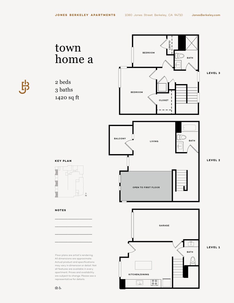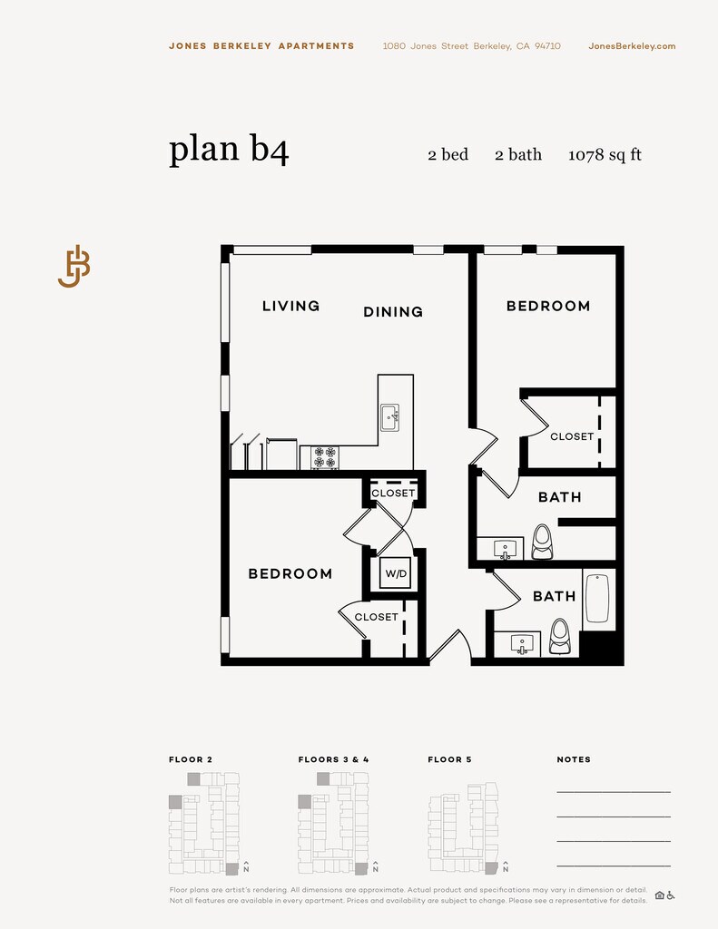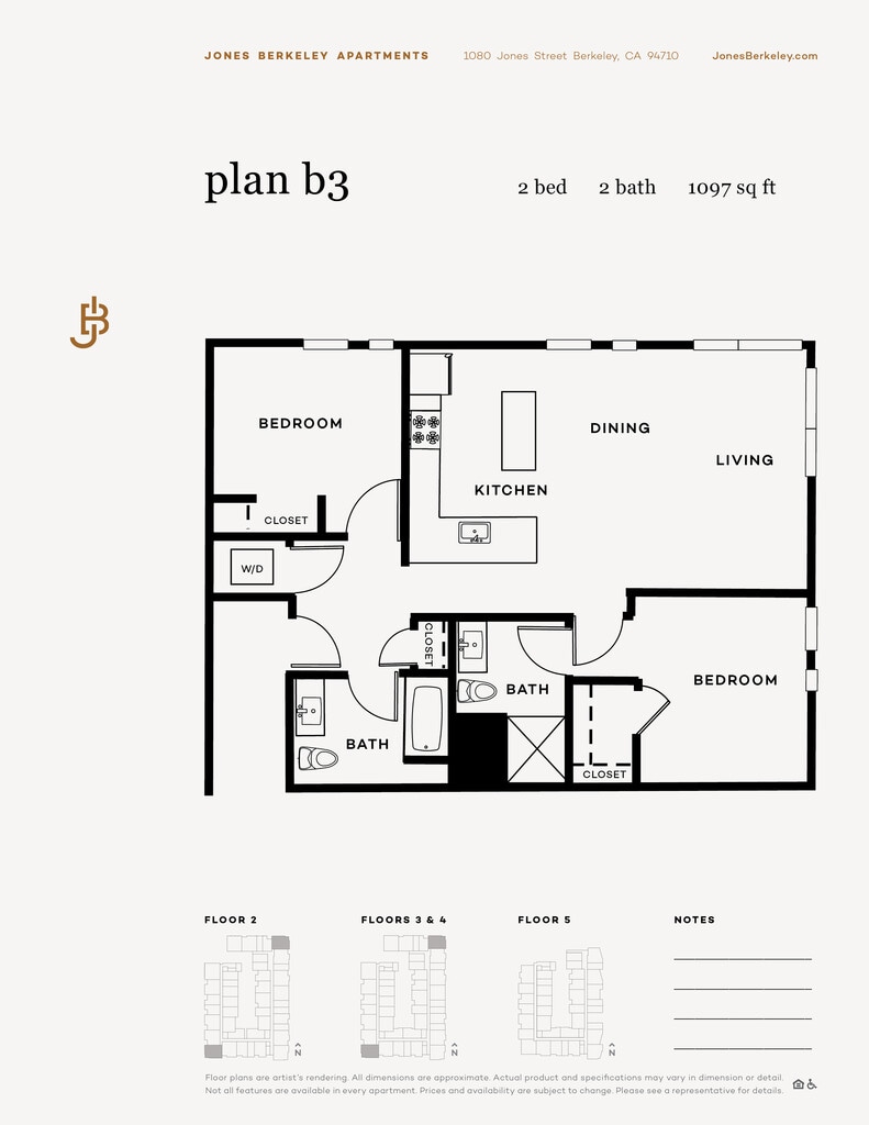 Jones Berkeley offers Studio to 2 Bedroom apartments starting from $2,882 and having 488–1,420 sq ft. Here is the current pricing and availability: