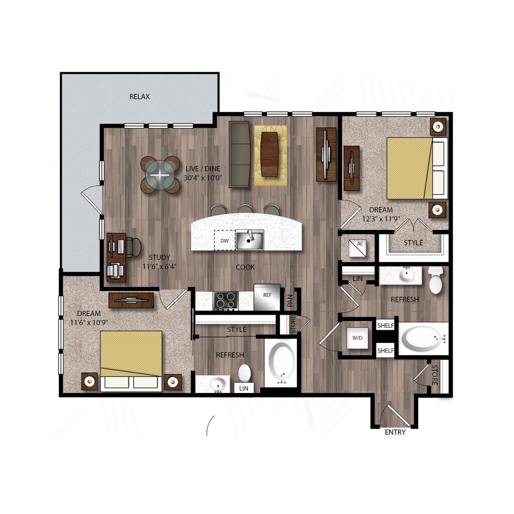 Studio, 1 Bath, 545 sq ftModel Gallery