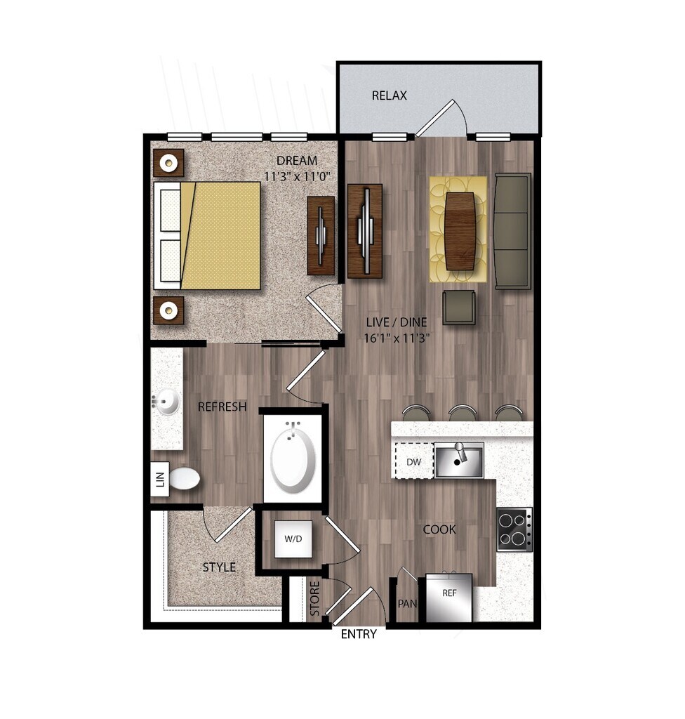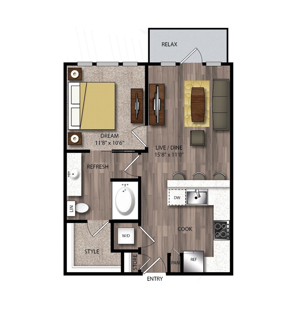 Apartment Model: S1From $1,304Studio, 1 Bath, 530 sq ftAvailable NowFloorplansPhotos![]()