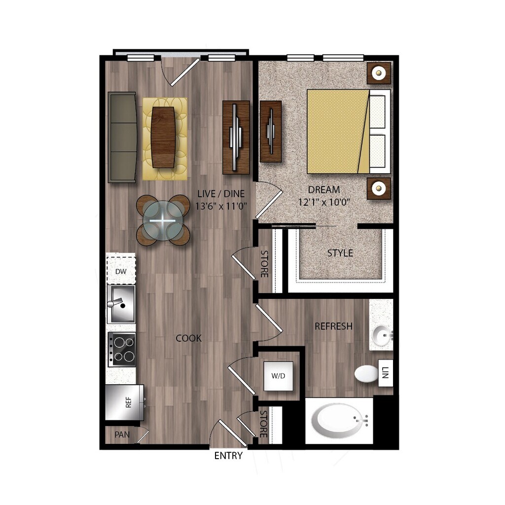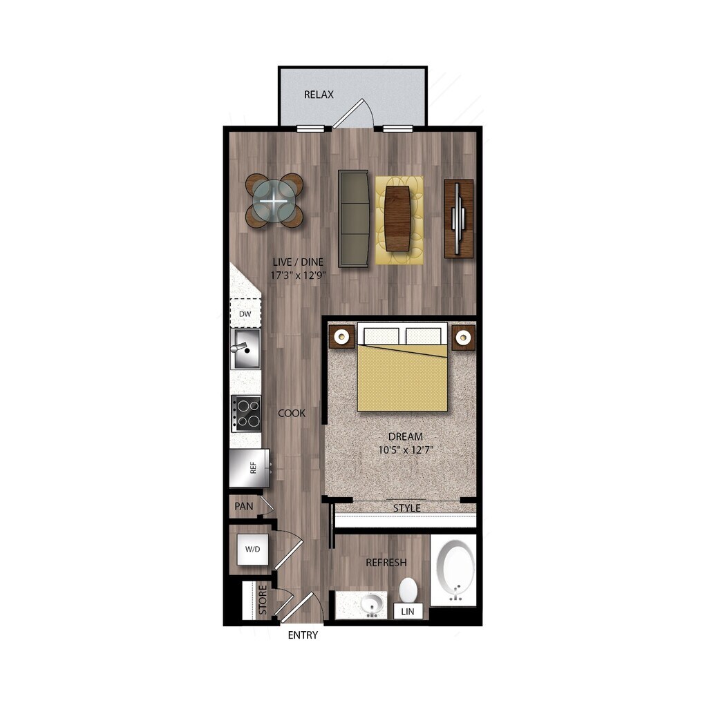 Studio, 1 Bath, 530 sq ftAvailable NowModel Gallery