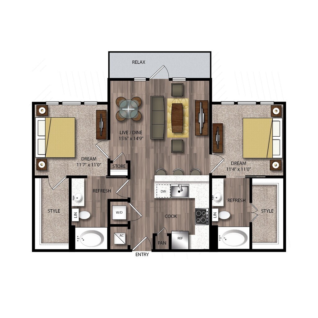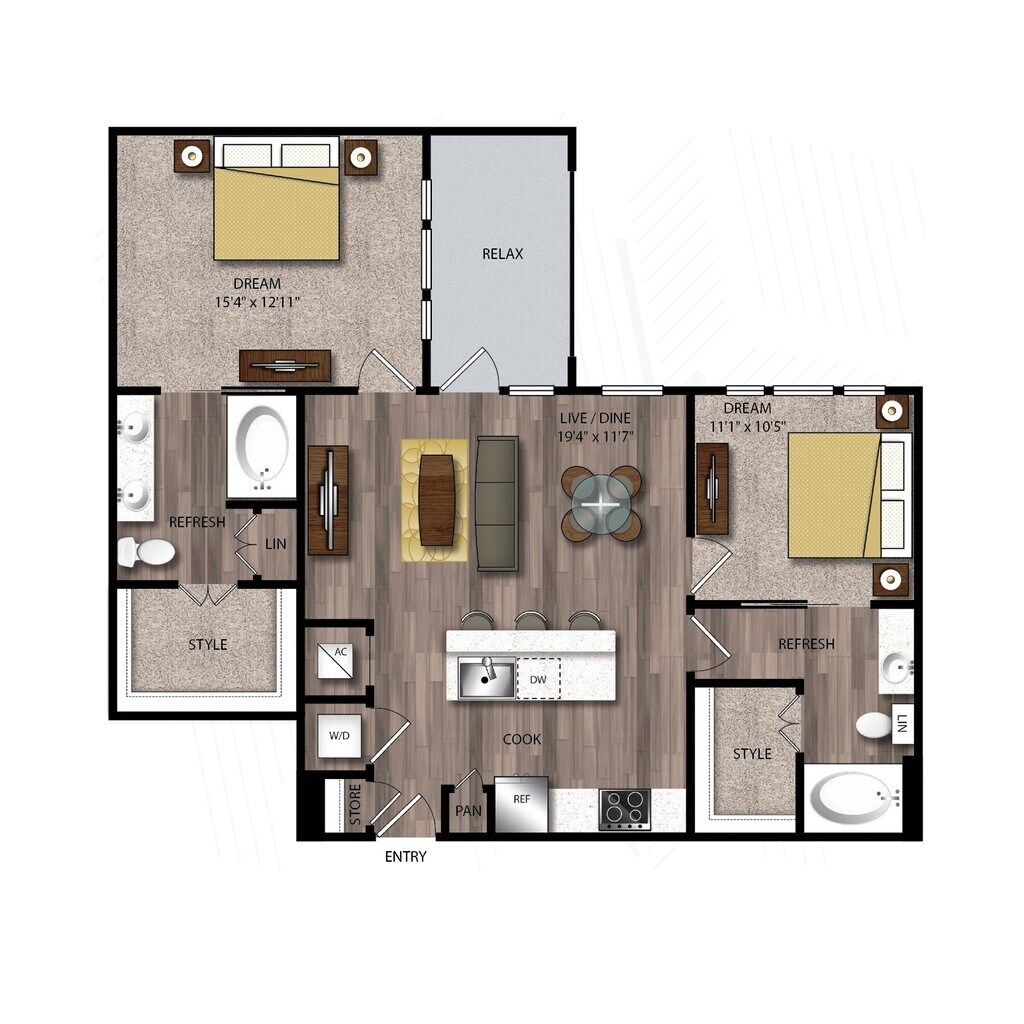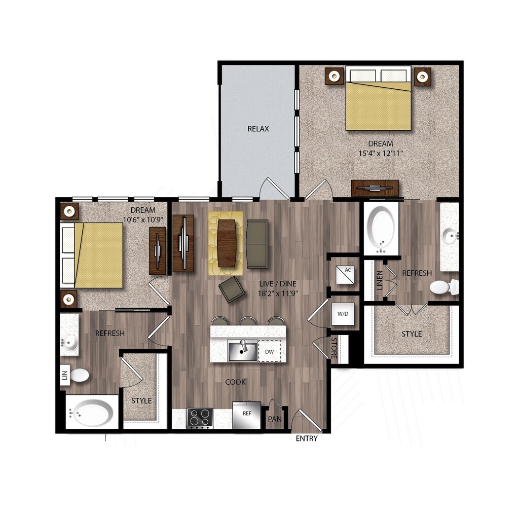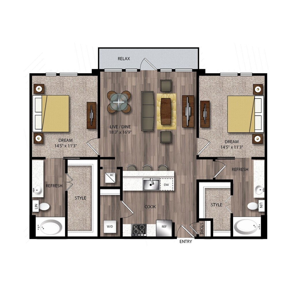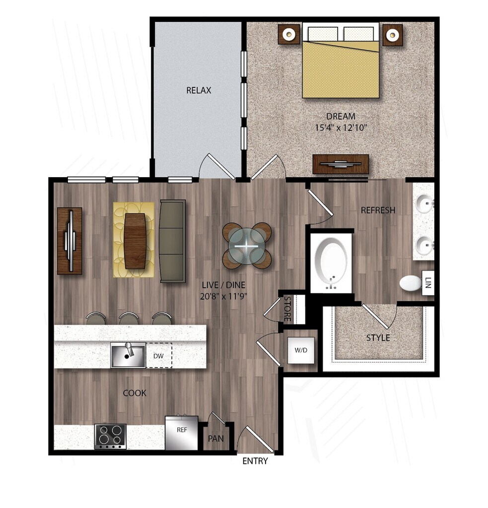 1 Bed, 1 Bath, 655 sq ftAvailable NowModel Gallery