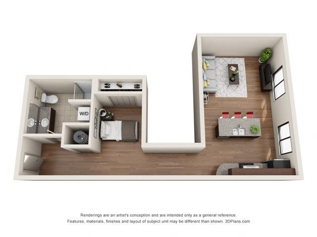 Studio, 1 Bath, 557 sq ftLargest StudioThis is the largest Studio at this PropertyModel Gallery