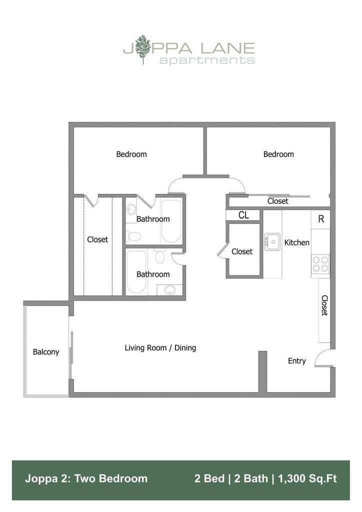 Apartment Model: Joppa 2: Two Bedroom$1,7802 Bedroom, 2 Bath, 1300 sq ftAvailable January 5, 2026![]()