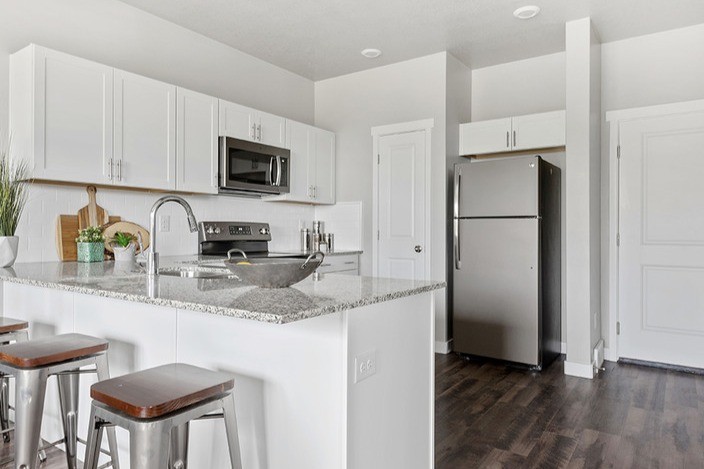 Welcome home to Jordan View Towns! Indulge yourself in better living with our deep soaking bathtub, a stand-alone shower, 2-car garages, full basements, dedicated laundry rooms, high-end slate finish appliances, and large walk-in closets. Choose from our Saratoga 2 bedroom floor plans or our 3 and 4 bedroom floor plans for plenty of space to call your own. With distinctive wood-style flooring and a designer kitchen tile backsplash*, you’ll find yourself content to stay home each night. Our Saratoga Springs townhomes put you at the forefront of scenic trails, the shores of Utah Lake, and premier shopping and dining. You deserve to love where you live, so discover endless ways that you can stay active and live well in a community. Our townhomes for rent in Saratoga Springs give you all the reasons in the world to come home and relax. Come by and tour today! Join Jordan View Towns.