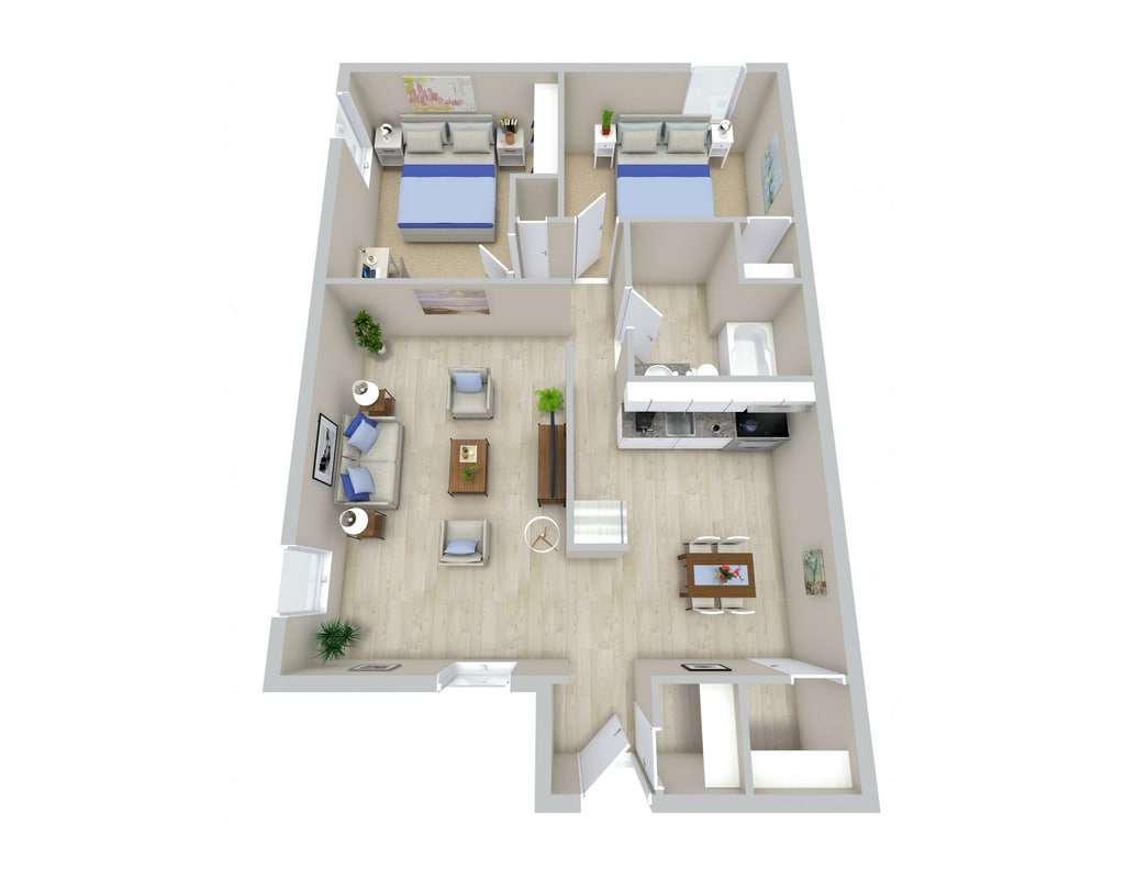 2 Beds, 1 Bath, 1000 sq ftModel Gallery
