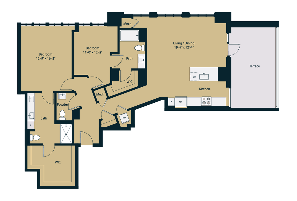 Apartment Model: A2From $3,3181 Bedroom, 1 Bath, 640 sq ftAvailable Now![]()
