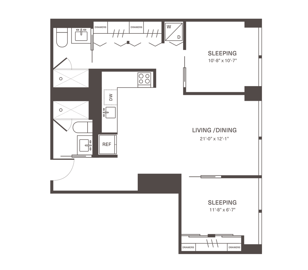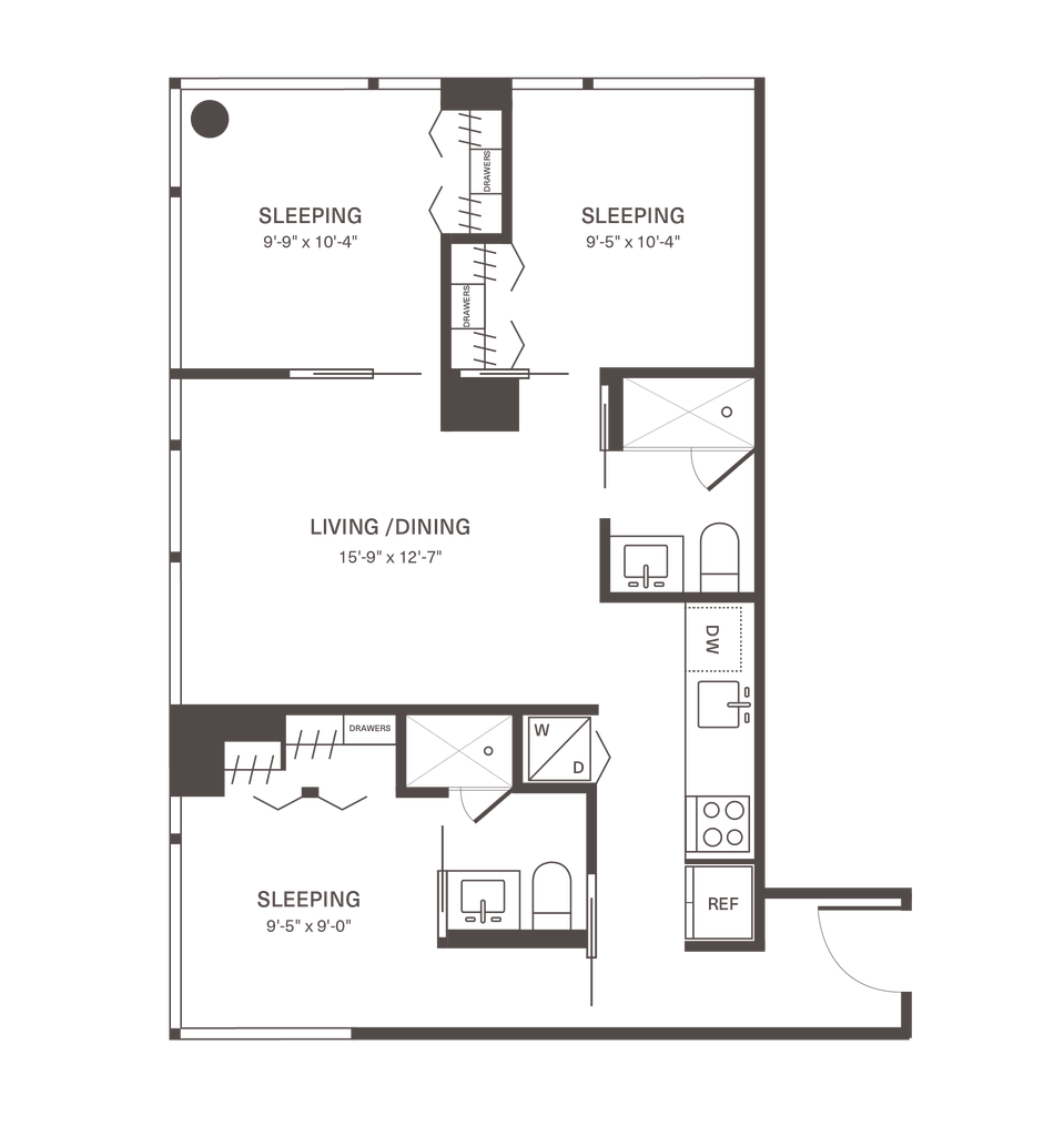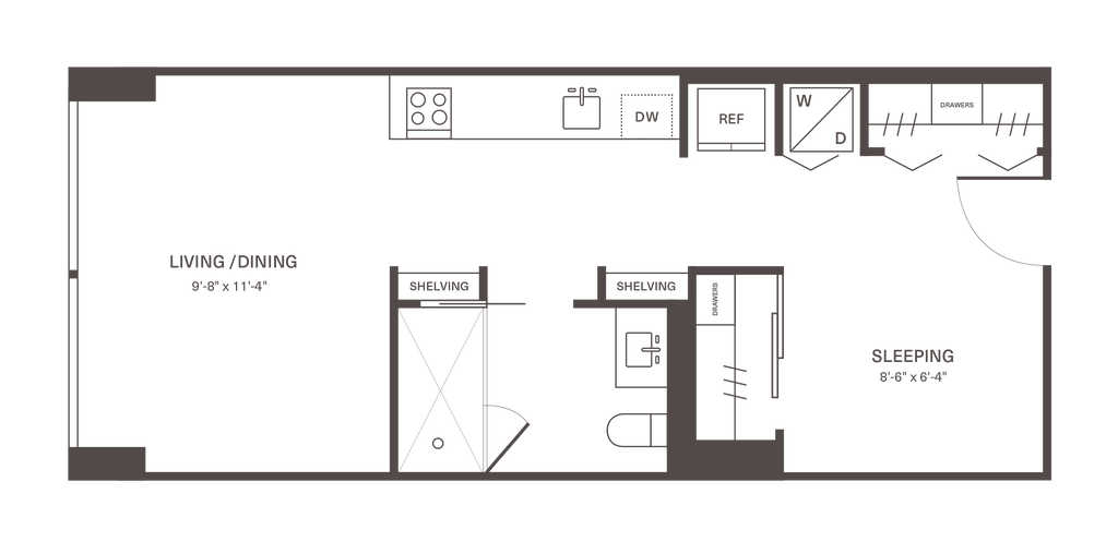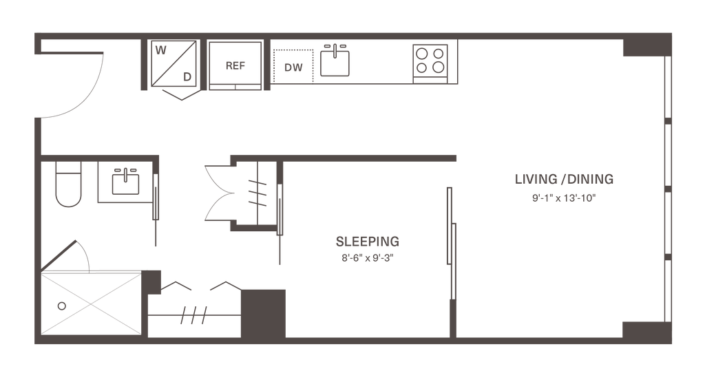 S2 - Floorplan 1 Apartment Unit: JSQ-1915Apartment Model: S2From $3,125Studio, 1 Bath, 456 sq ftAvailable November 29, 20251 Bedroom