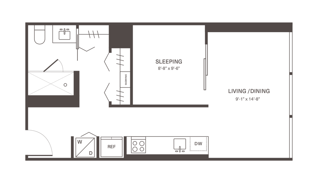 Apartment Model: S1From $2,905Studio, 1 Bath, 442 sq ftAvailable February 14, 2026Floor plans are artist's rendering. All dimensions are approximate. Actual product and specifications may vary in dimension or detail. Not all features are available in every rental home. Please see a representative for details.