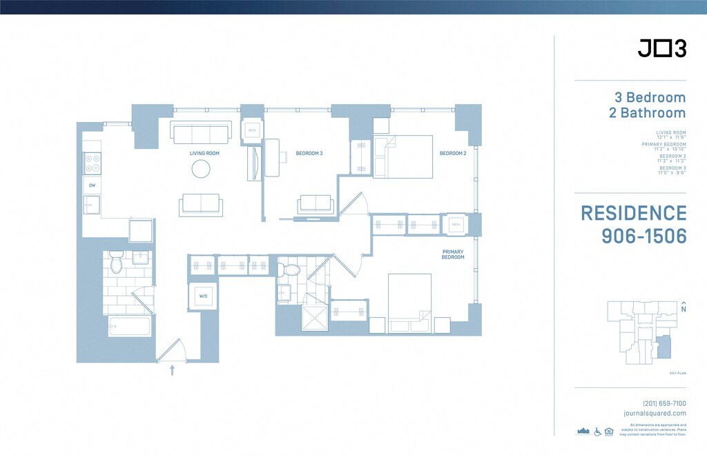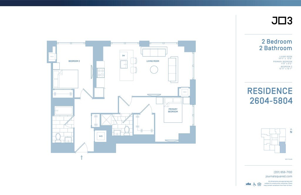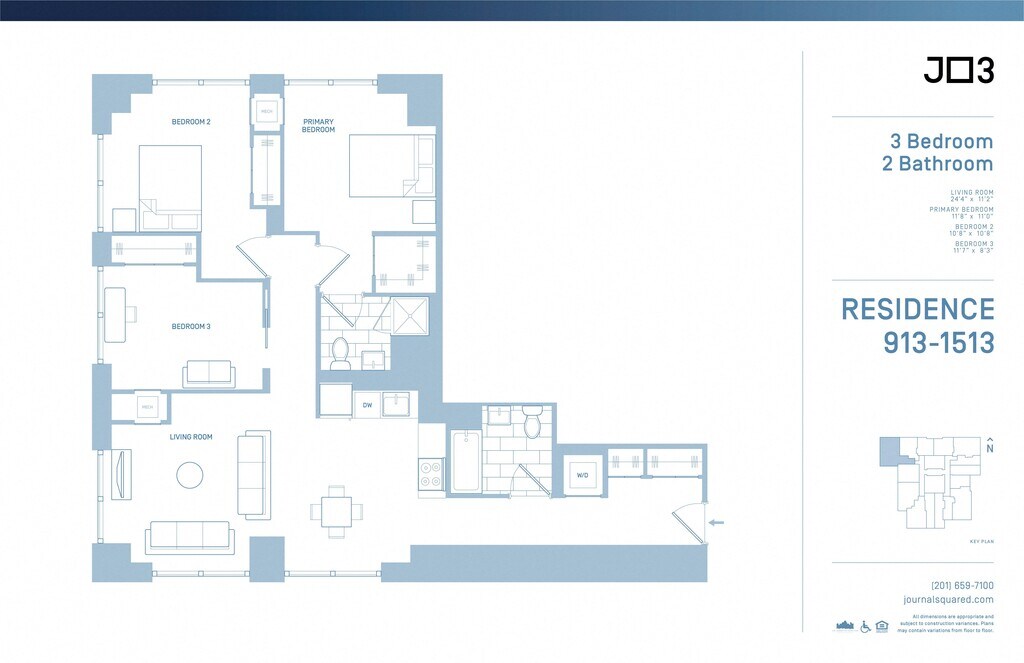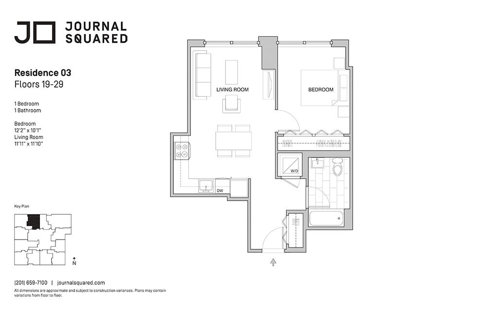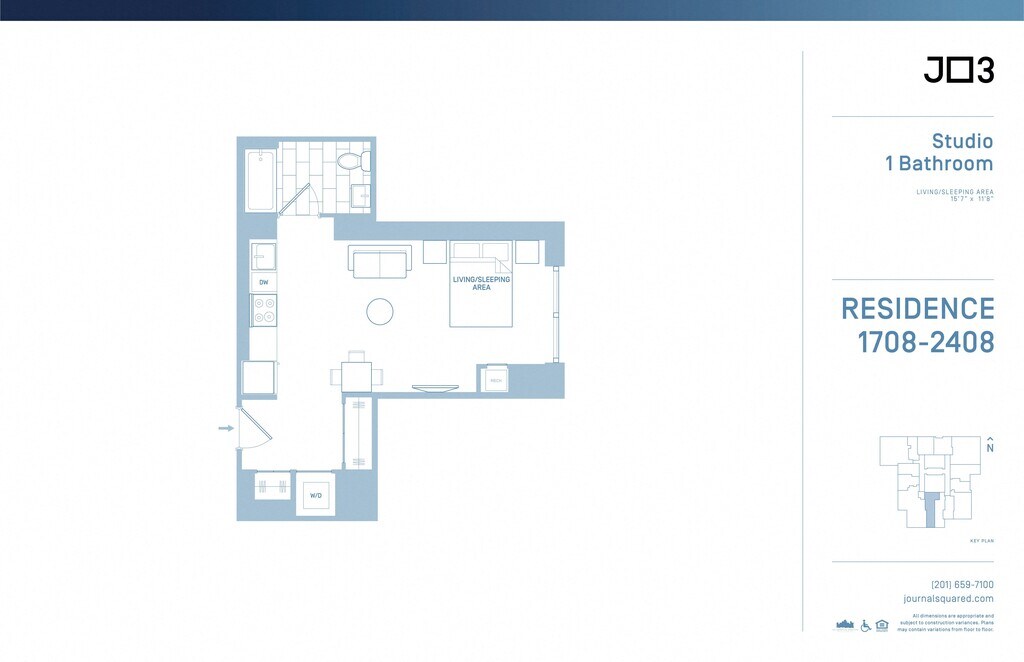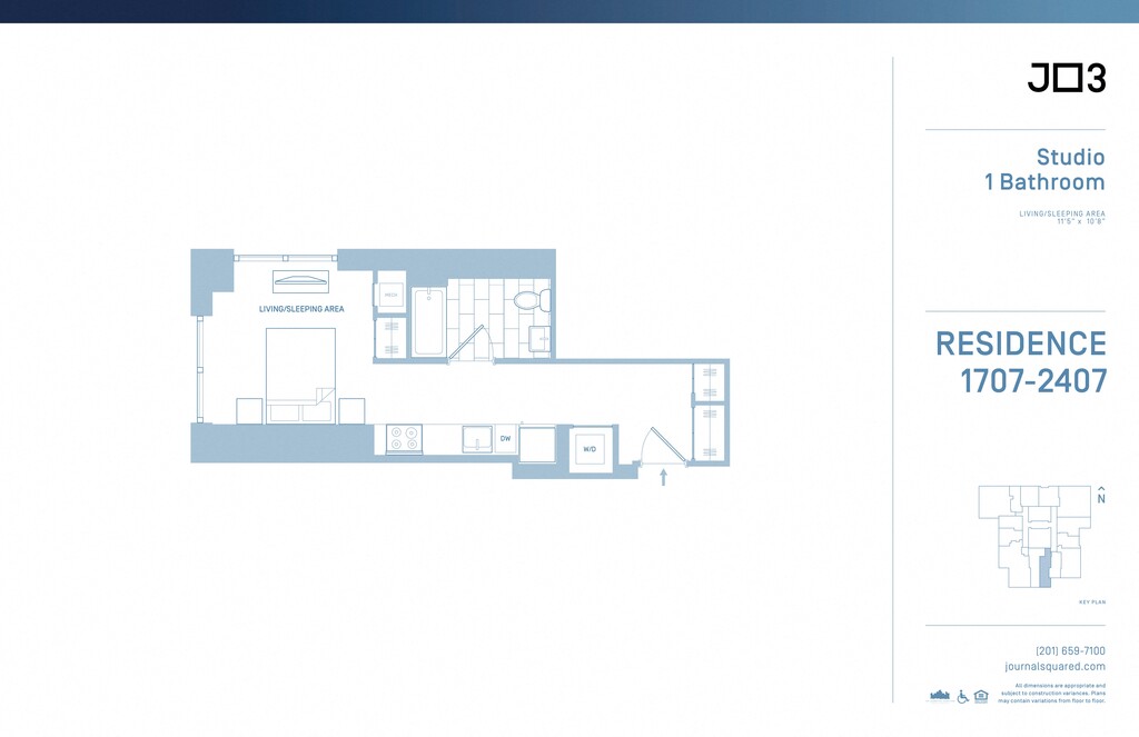 Journal Squared offers Studio to 3 Bedroom apartments starting from $2,480 and having 403–1,563 sq ft. Here is the current pricing and availability: