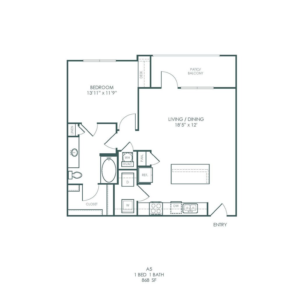 Apartment Model: A5From $1,4511 Bedroom, 1 Bath, 867 sq ftAvailable Now![]()